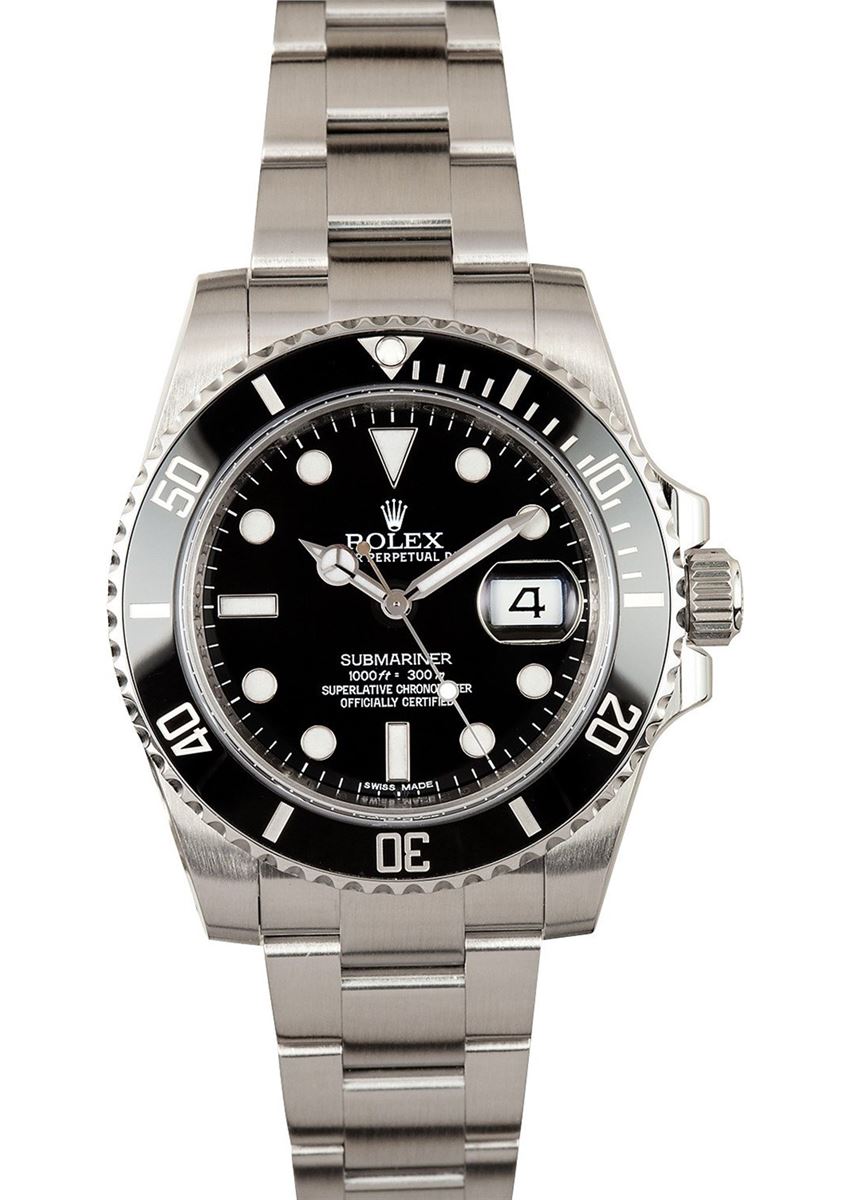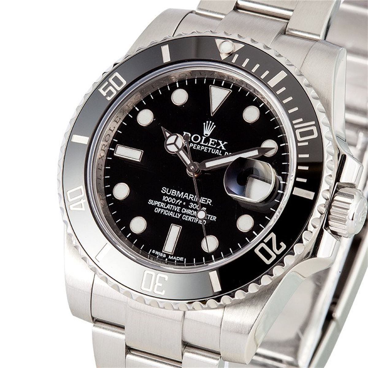 Model/Style-Submariner 116610 Serial/Year-Random Features-Automatic movement w/ date, waterproof screw-down crown, unidirectional rotatable Cerachrom (ceramic) time-lapse diver's bezel, scratch-resistant sapphire crystal Case-Stainless steel (40mm), inner reflector ring engraved with serial number, no holes case Bracelet-Stainless steel Oyster with Glidelock clasp #9224