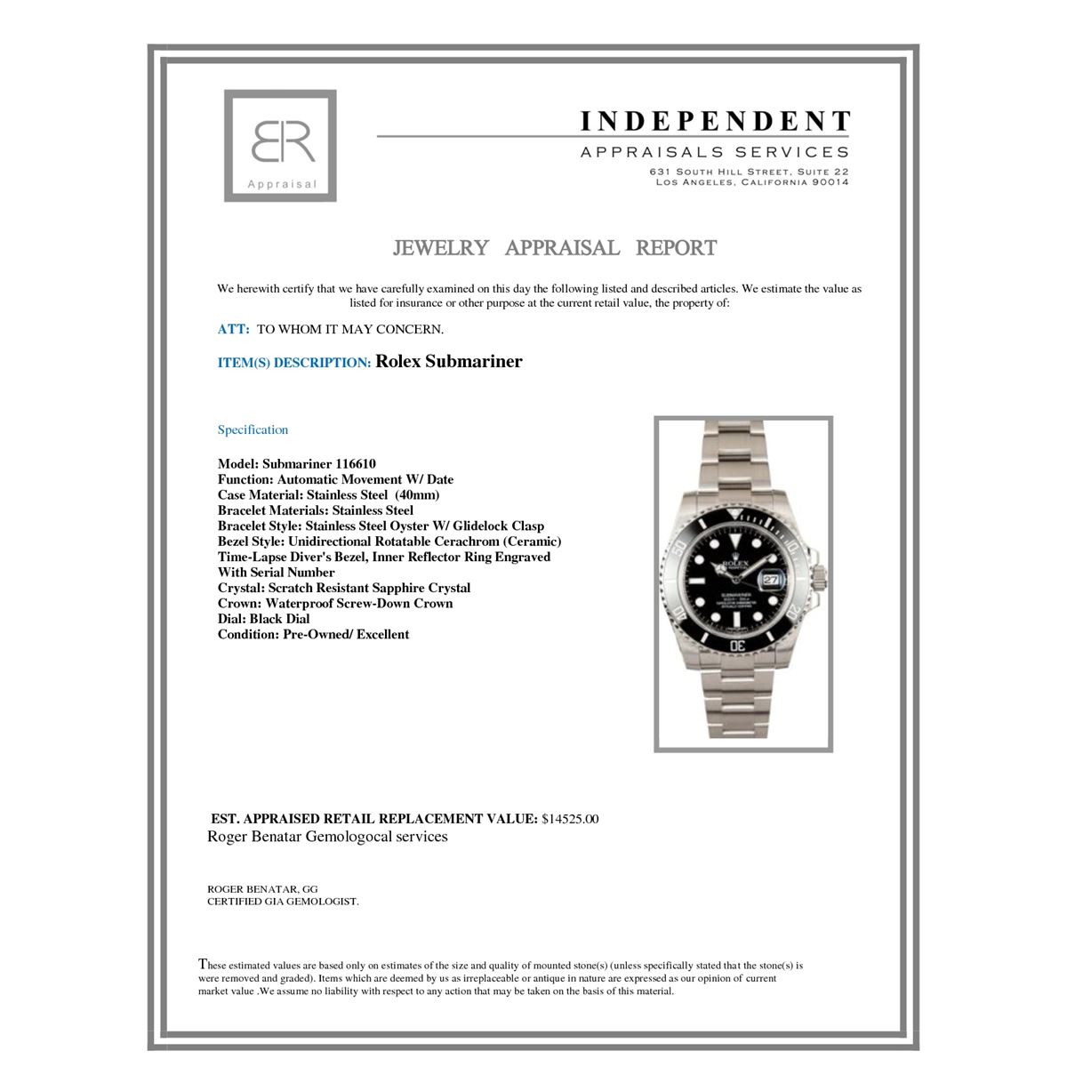 Not all jewelry, watches or loose stones are appraised and the appraisals are provided for bidders only in certain instances at the discretion of the Company. Appraisals, if any should be use to verify gemstone and or metal weights. The appraisals should not be used for valuation of any item. No guarantee, warranty or representation is intended by the Company in any appraisal. All dimensions and weights of such lots are approximate and are consistent with standards and practices in the industry. Condition reports are provided as a service to the prospective buyer. Bidders should take note that such descriptions are not warranties and that watches may need general service, change of battery or further repairs for which the buyer is solely responsible