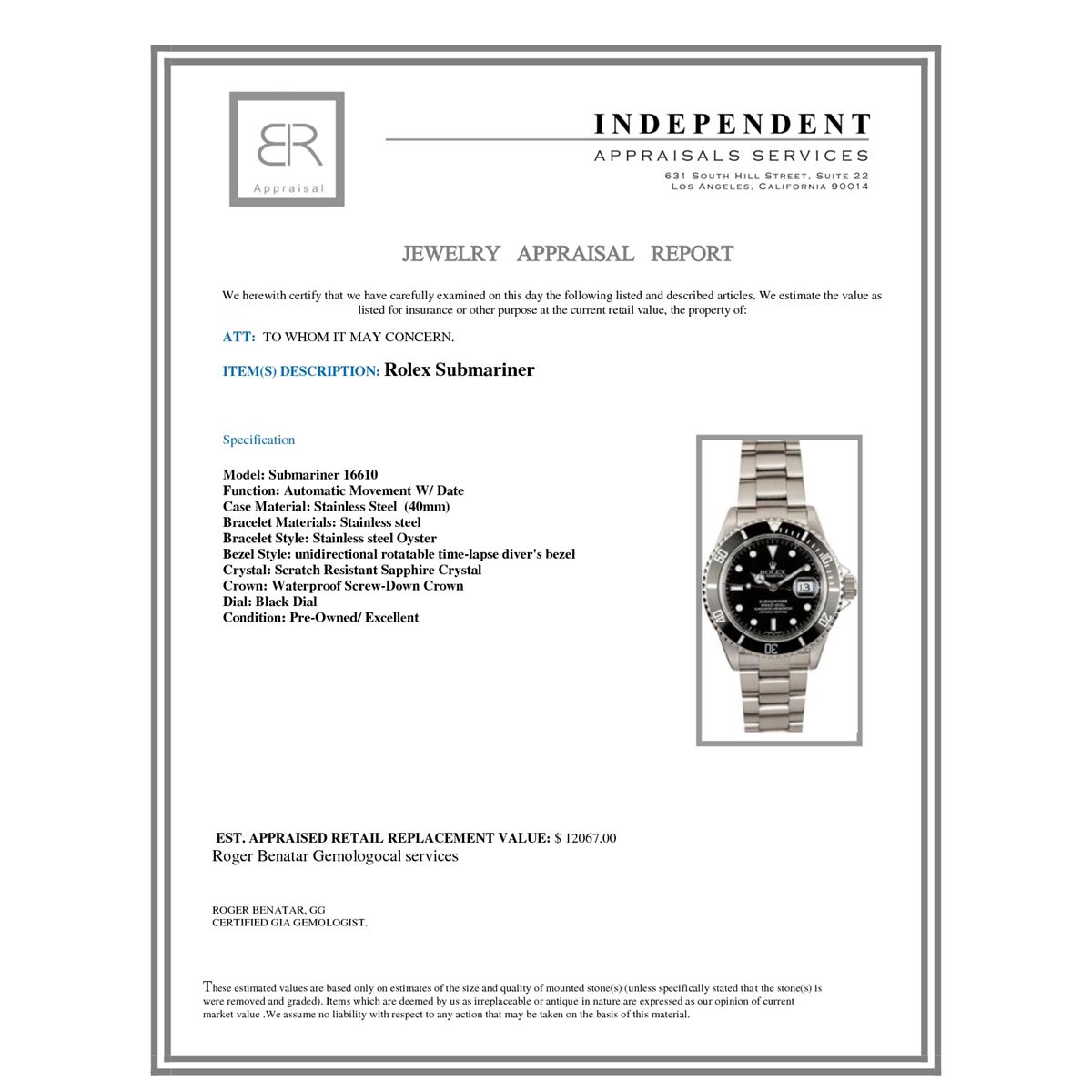 Model/Style-Submariner 16610 Serial/Year-Random Features-Automatic movement w/date, waterproof screw-down crown, unidirectional rotatable time-lapse diver's bezel, scratch-resistant sapphire crystal Case-Stainless steel (40mm) Bracelet-Stainless steel Oyster #9268