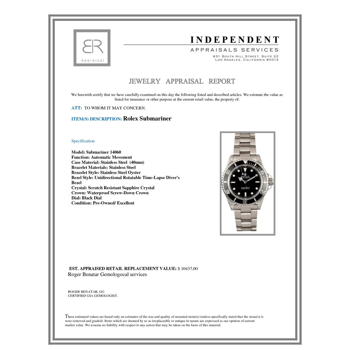 Model/Style-Submariner 14060 Serial/Year-Random Features-Automatic movement, waterproof screw-down crown, unidirectional rotatable time-lapse diver's bezel, scratch-resistant sapphire crystal Case-Stainless steel (40 mm) Bracelet-Stainless steel Oyster #9219