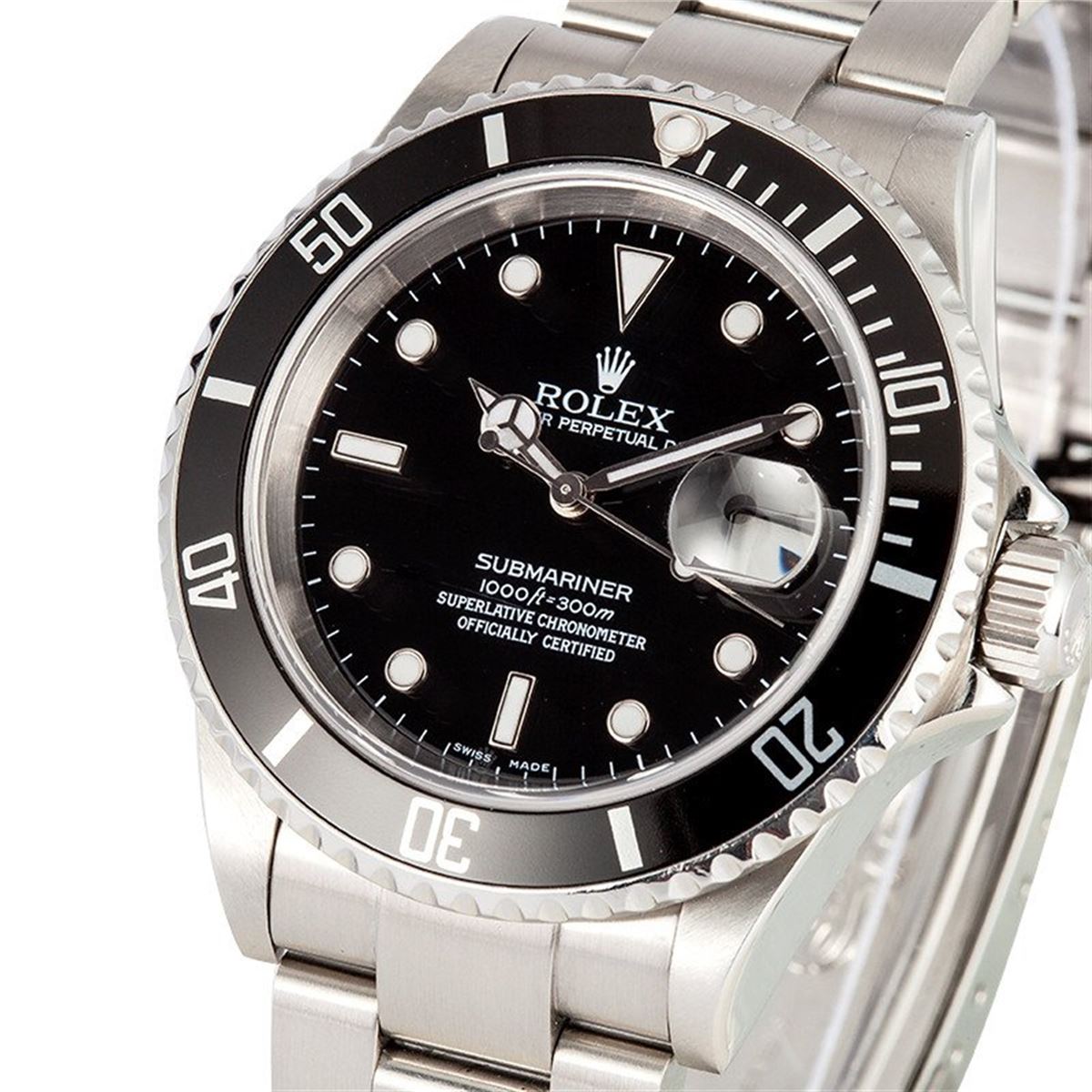 Model/Style-Submariner 16610 Serial/Year-Random Features-Automatic movement, waterproof screw-down crown, unidirectional rotatable time-lapse diver's bezel, scratch-resistant sapphire crystal Case-Stainless steel (40mm) no holes Bracelet-Stainless steel Oyster #9228