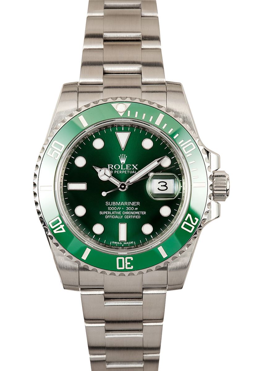 Model/Style-Submariner 116610LV Serial/Year-Random Features-Automatic movement, waterproof, screw-down crown, green ceramic unidirectional rotatable time-lapse diver's bezel, scratch-resistant sapphire crystal Case-Stainless steel (40mm), inner reflector ring engraved w/ serial number Bracelet-Stainless Steel Oyster w/ Glidelock clasp #9202