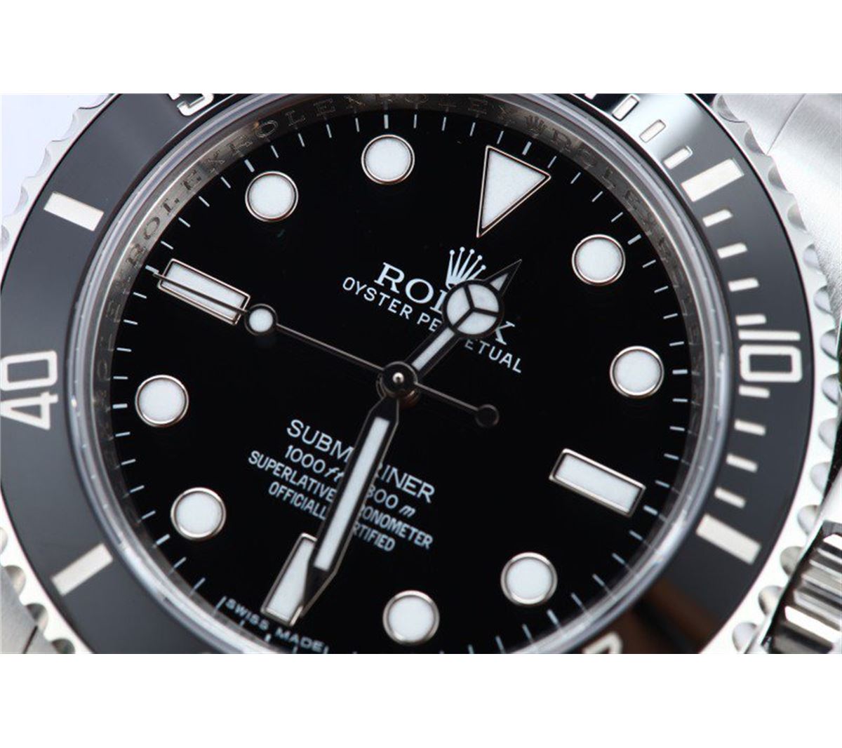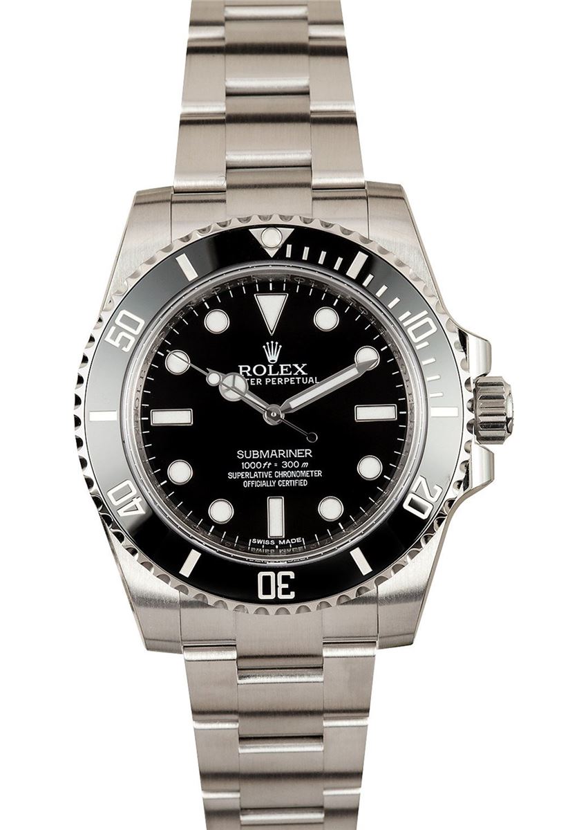 Model/Style-Submariner 114060 Serial/Year-Random Features-Automatic movement, waterproof screw-down crown, unidirectional rotatable black Cerachrom (ceramic) time lapse diver's bezel, scratch-resistant sapphire crystal Case-Stainless steel (40mm) no holes, inner reflector ring engraved w/ serial number Bracelet-Stainless steel Oyster w/ Glidelock clasp #9255