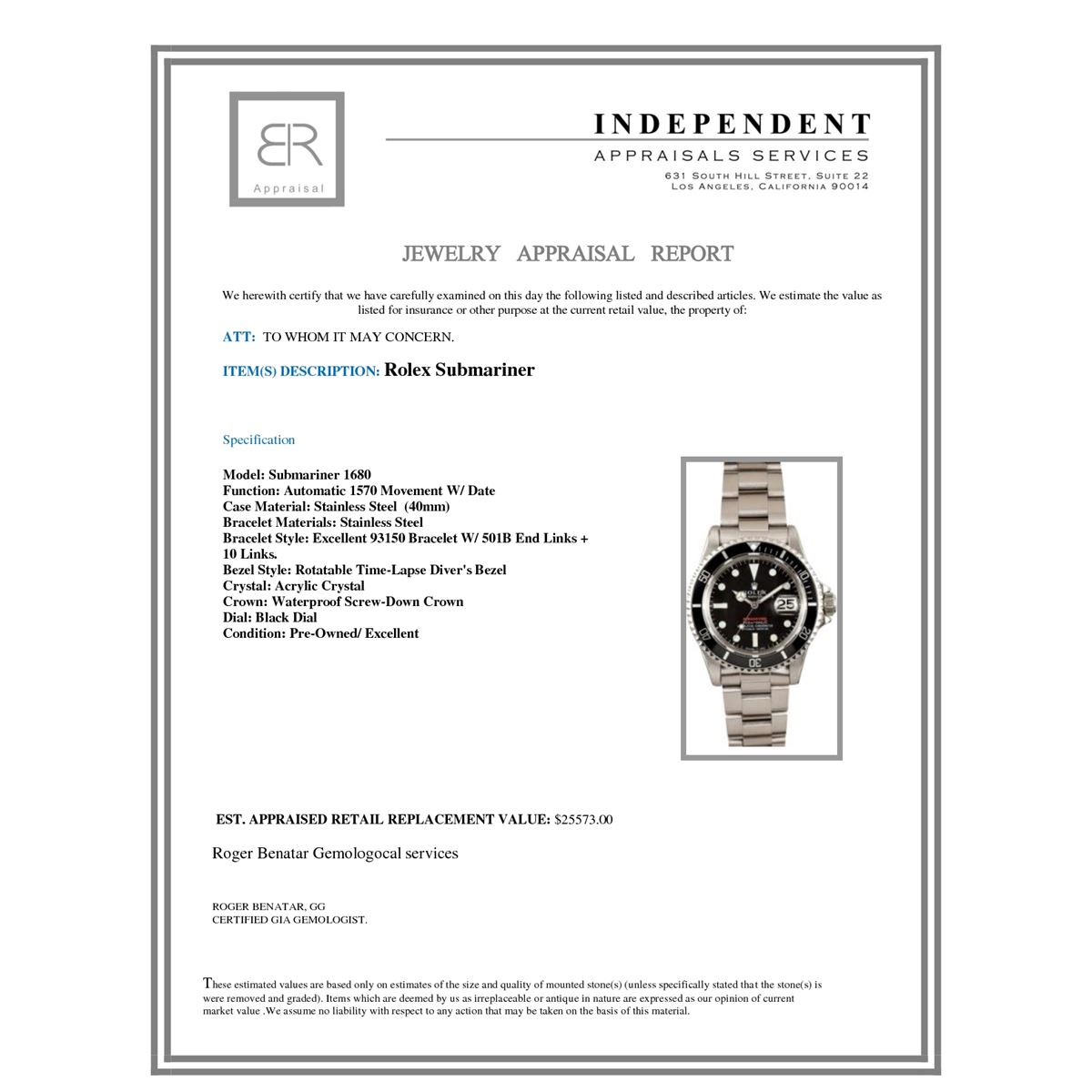Model/Style-Submariner 1680 Serial/Year-Random Features-Automatic 1570 movement w/ date, waterproof screw-down crown, rotatable time-lapse diver's bezel, acrylic crystal Case-Stainless steel case (40mm). Case is in excellent condition. Bracelet-Excellent 93150 bracelet w/ 501B end links + 10 links. Bracelet shows minimal stretch #9292