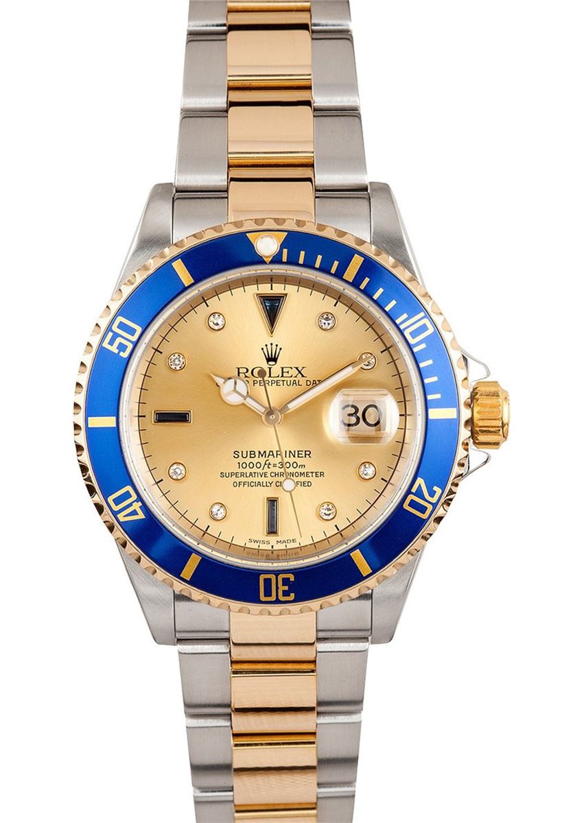 Model/Style-Submariner 16613 Serial/Year-Random Features-Automatic movement, waterproof screw-down crown, unidirectional rotatable time-lapse diver's bezel, scratch-resistant sapphire crystal Case-18k yellow gold & stainless steel (40mm) Bracelet-18k yellow gold and stainless w/ flip lock clasp #9250