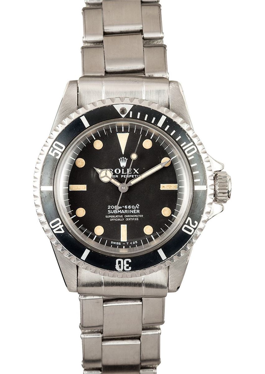 Model/Style-Submariner 5512 Serial/Year-Random Features-Automatic 1570 movement, domed acrylic crystal, waterproof screw-down crown, aged bezel insert Case-Stainless steel, rotatable diver's timing bezel, pierced lugs, beautiful sharp bevels Bracelet-Stainless Steel Oyster Rivet w/ 10 links #9295