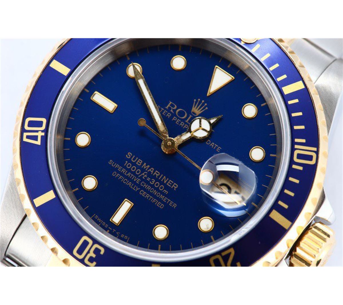 Model/Style-Submariner 16613 Serial/Year-Random Features-Automatic movement w/date, waterproof screw-down crown, unidirectional rotatable time-lapse diver's bezel, waterproof to 1,000 ft, scratch-resistant sapphire crystal Case-Stainless steel and 18k yellow gold w/ blue bezel insert (40mm) Bracelet-Stainless steel and 18k yellow gold Oyster #9248