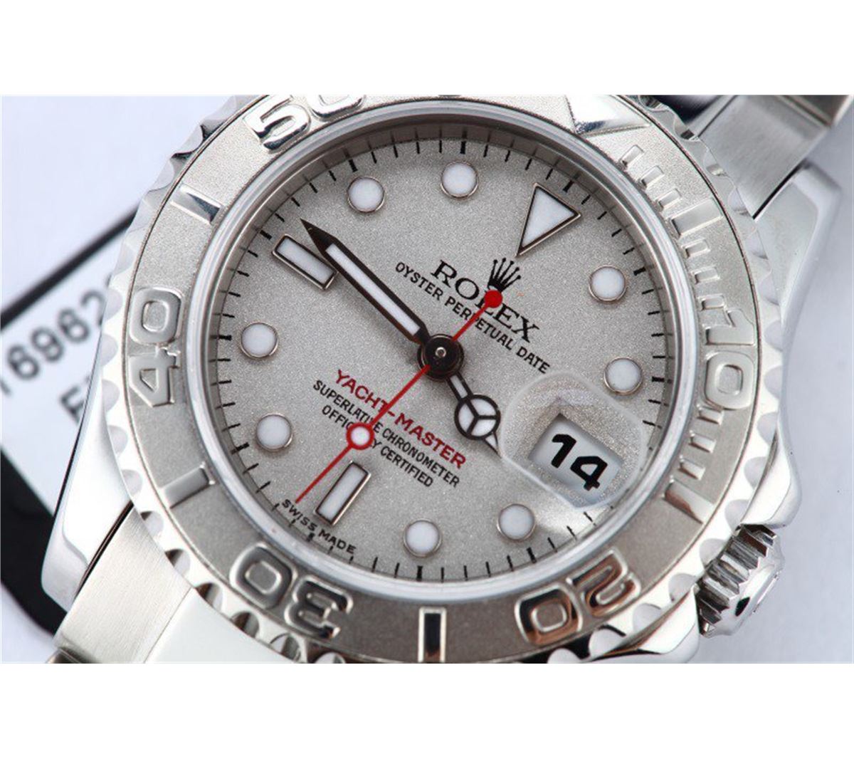 Model/Style-Yacht-Master 169622 Serial/Year-Random Features-Automatic movement, Quickset date, scratch-resistant sapphire crystal, waterproof screw-down crown Case-Stainless steel w/ platinum rotating bezel (29mm) Bracelet-Stainless steel Oysterlock #9304
