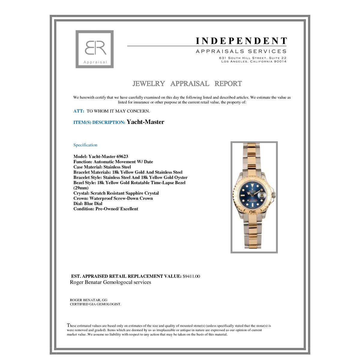Model/Style-Yacht-Master 69623 Serial/Year-Random Features-Automatic movement, scratch-resistant sapphire crystal, waterproof screw-down crown, Quickset date Case-Stainless steel w/ 18k yellow gold rotatable time-lapse bezel (29mm) Bracelet-Stainless steel and 18k yellow gold Oyster #9301