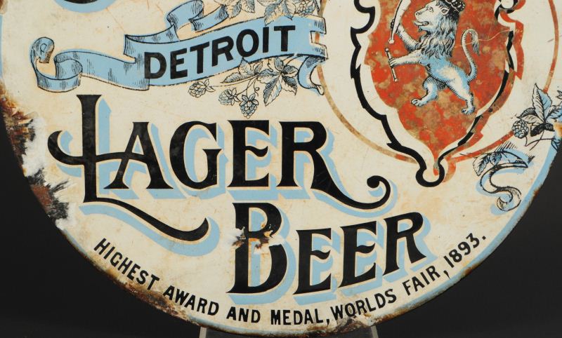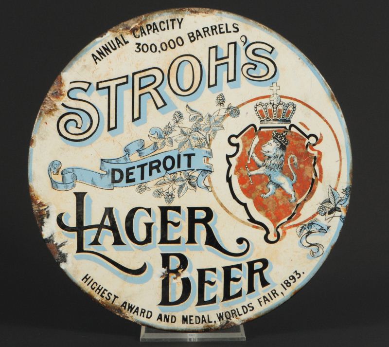 Stroh's Lager Beer 1893 Porcelain Sign Measures 9.5" Diameter