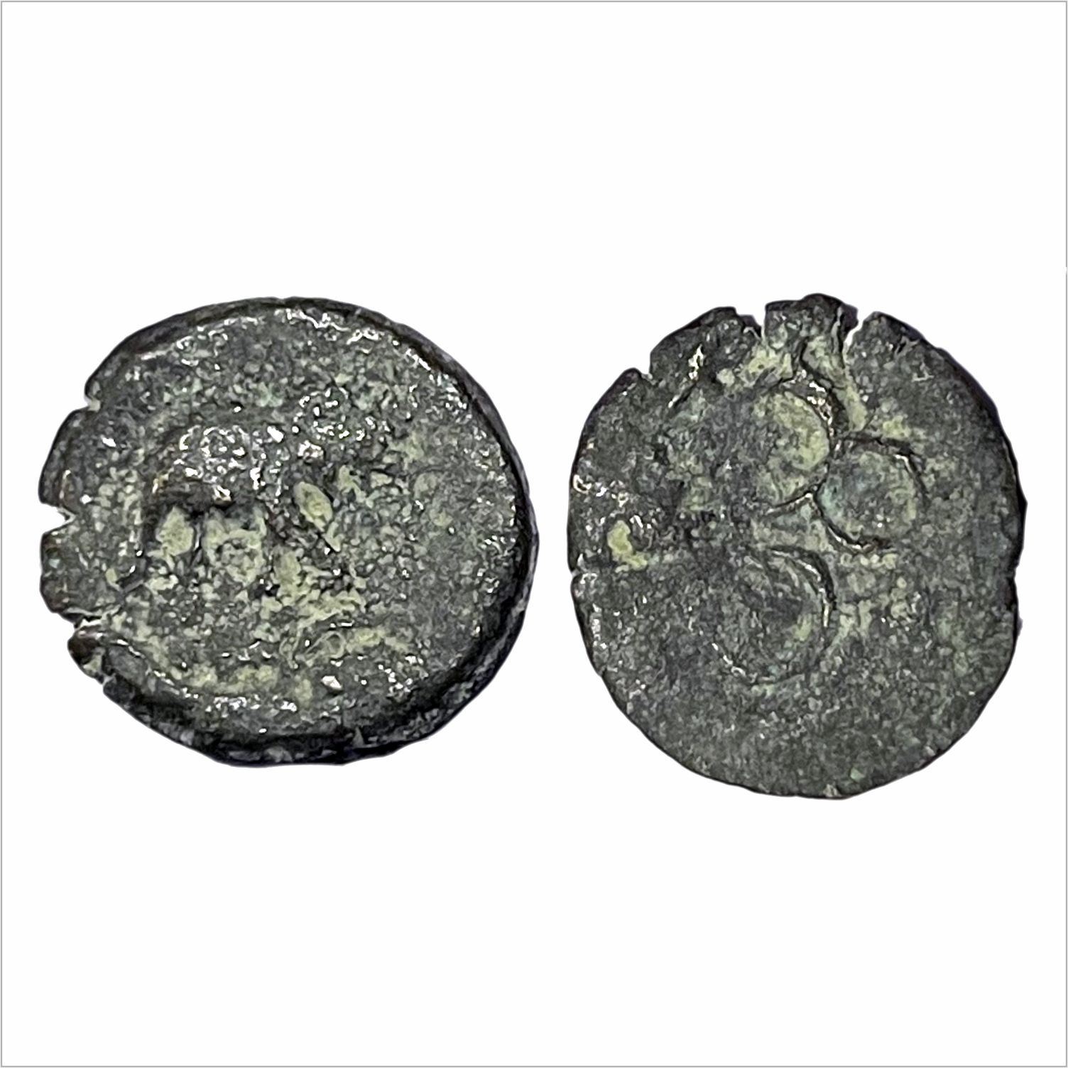 Pre-Satavahana, Kukutakhada (2nd – 1st Cen. BC), Copper Unit, Marathwada Region, 2.40g, Obv: Elephant facing to right with upraised trunk, Rev: Tree in Railing & Triagular headed symbol.