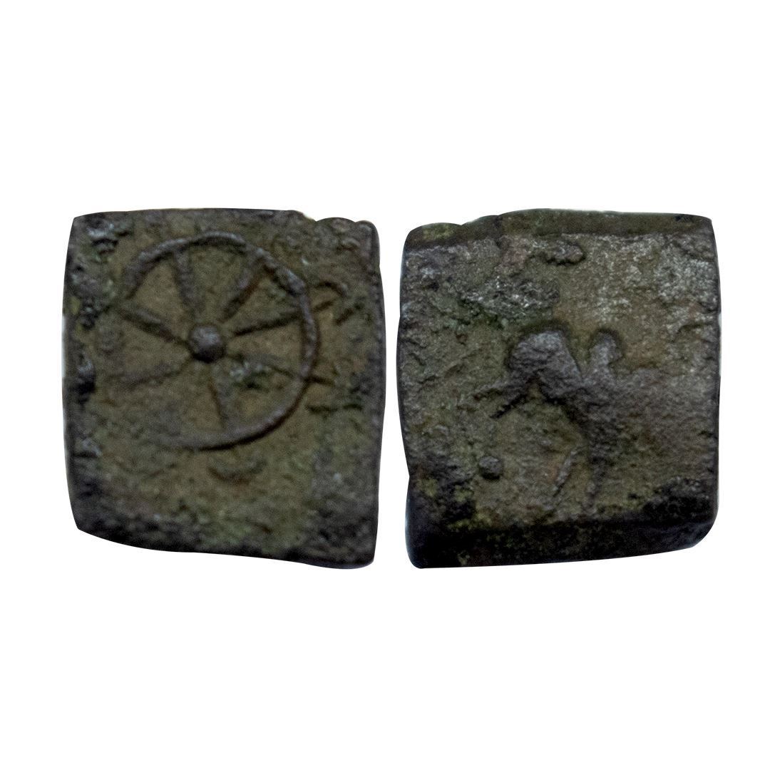 Pre Satavahana from Malwa Region (c. 2nd-1st Century BC) Copper Unit, 0.83 gms, Obv. Bull to right, Rev. Chakra, fine, very scarce.