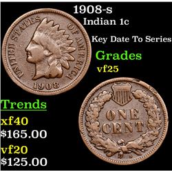 1908-s Key Date To Series . Indian Cent 1c Grades vf+. very scarce. Per PCGS :"The 1908-S Indian cent is the third lowest mintage circulation ...