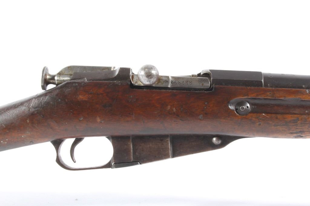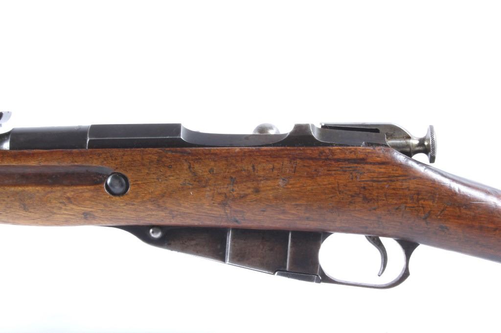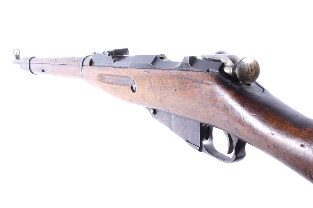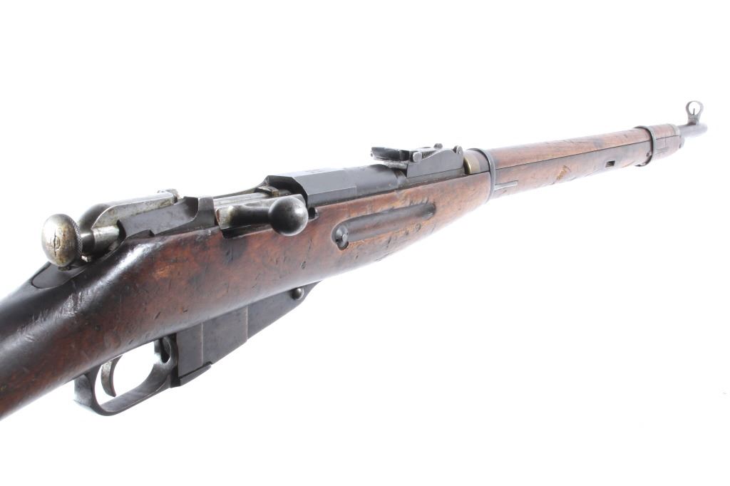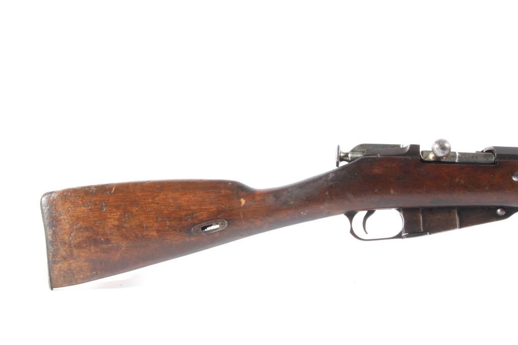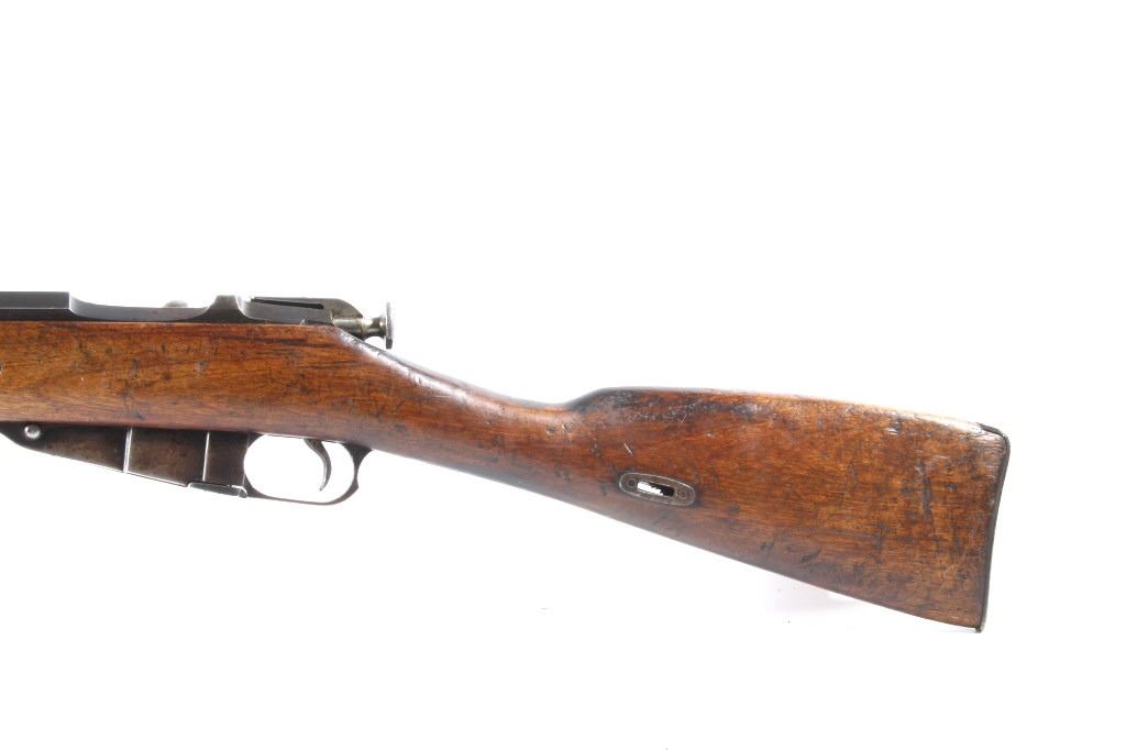 Offered for sale is a Tula Mosin-Nagant Model 1891/30 7.62x54R Bolt Action Rifle. The rifle features a 29" barrel, hex receiver, five round magazine, two piece hardwood stock, adjustable rear sight, and blue'd finish. The 3-line rifle M1891 colloquially known as Mosin–Nagant is a five-shot, bolt-action, internal magazine–fed, military rifle developed from 1882 to 1891, and used by the armed forces of the Russian Empire, the Soviet Union and various other nations. It is one of the most mass-produced military bolt-action rifles in history with over 37 million units having been made since its inception in 1891, and, in spite of its age, it has been used in various conflicts around the world even up to the modern day. This rifle shows good condition for its age, with handling marks and signs of use. The mechanics are tight and smooth. The bore shows some darkness in the grooves. Missing cleaning rod and several different serial numbered parts. Importation mark on top of receiver. The rifle was manufactured in 1936. Curio & Relic firearm. FFL transfer or NICS background check required. Serial number is 30069.