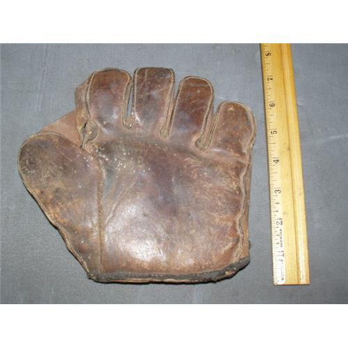 Pre-WWII baseball glove Draper & Maynard. This glove is in good condition. It has one piece of leather sown between the thumb and finger. There is no webbing between the fingers. The button is worn from play and I had a hard time trying to picture it. It has a pointer, dog and below it is a diamond with a D & M. This stands for Draper & Maynard. There are no rips or tares in this glove This glove is very dry and should be oiled once you have received it. The glove is worn and chaffed in spots. This is common for a glove this old. I have not tried to clean or oil this glove. I sell them as is and as found. There are people out there that know more about the care of these gloves than I do. I feel this will be a great addition to any collection.