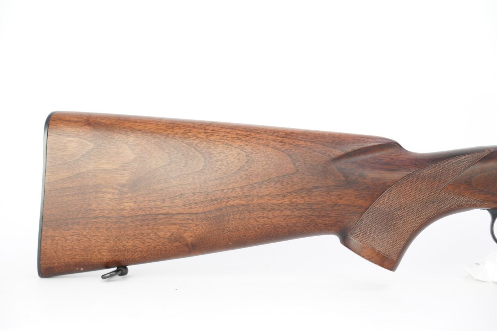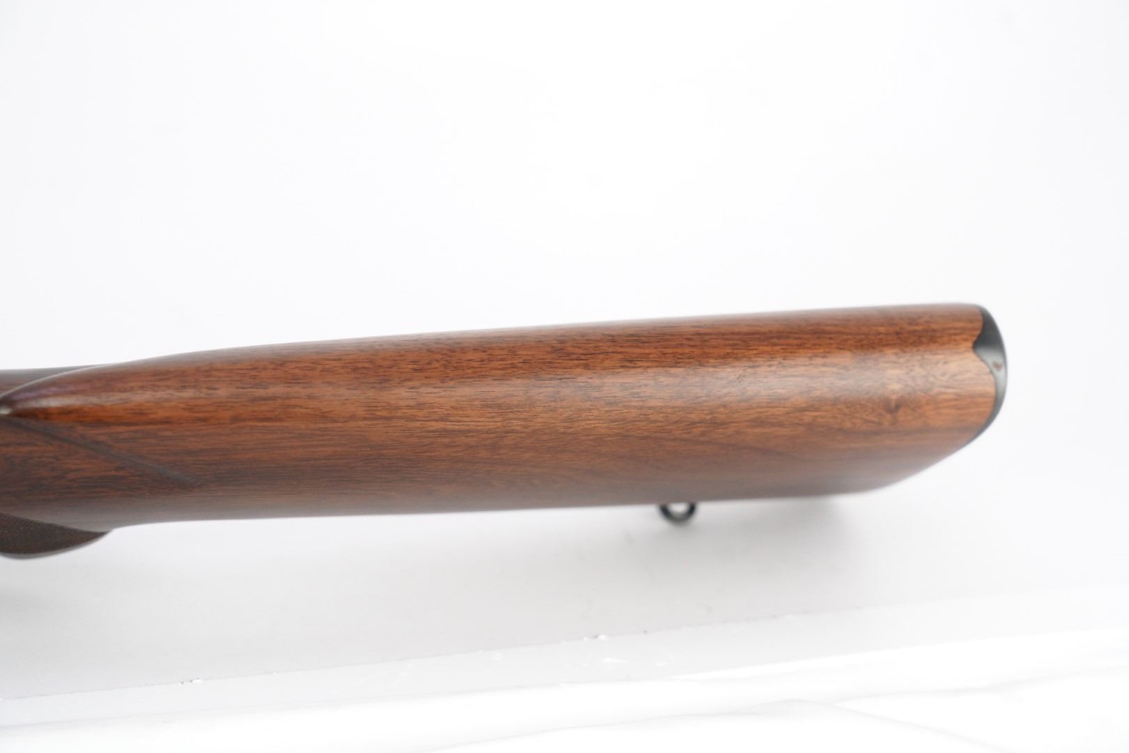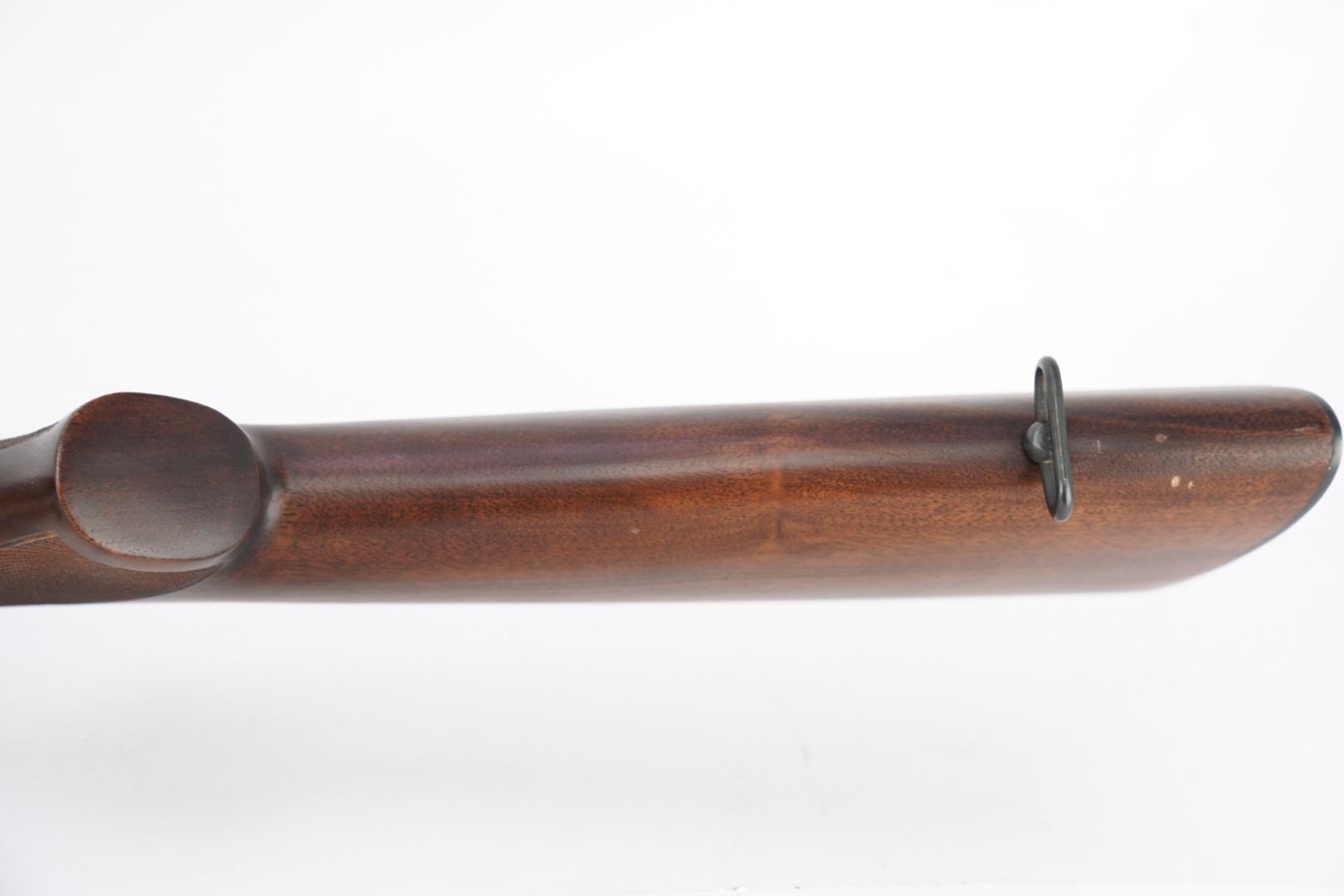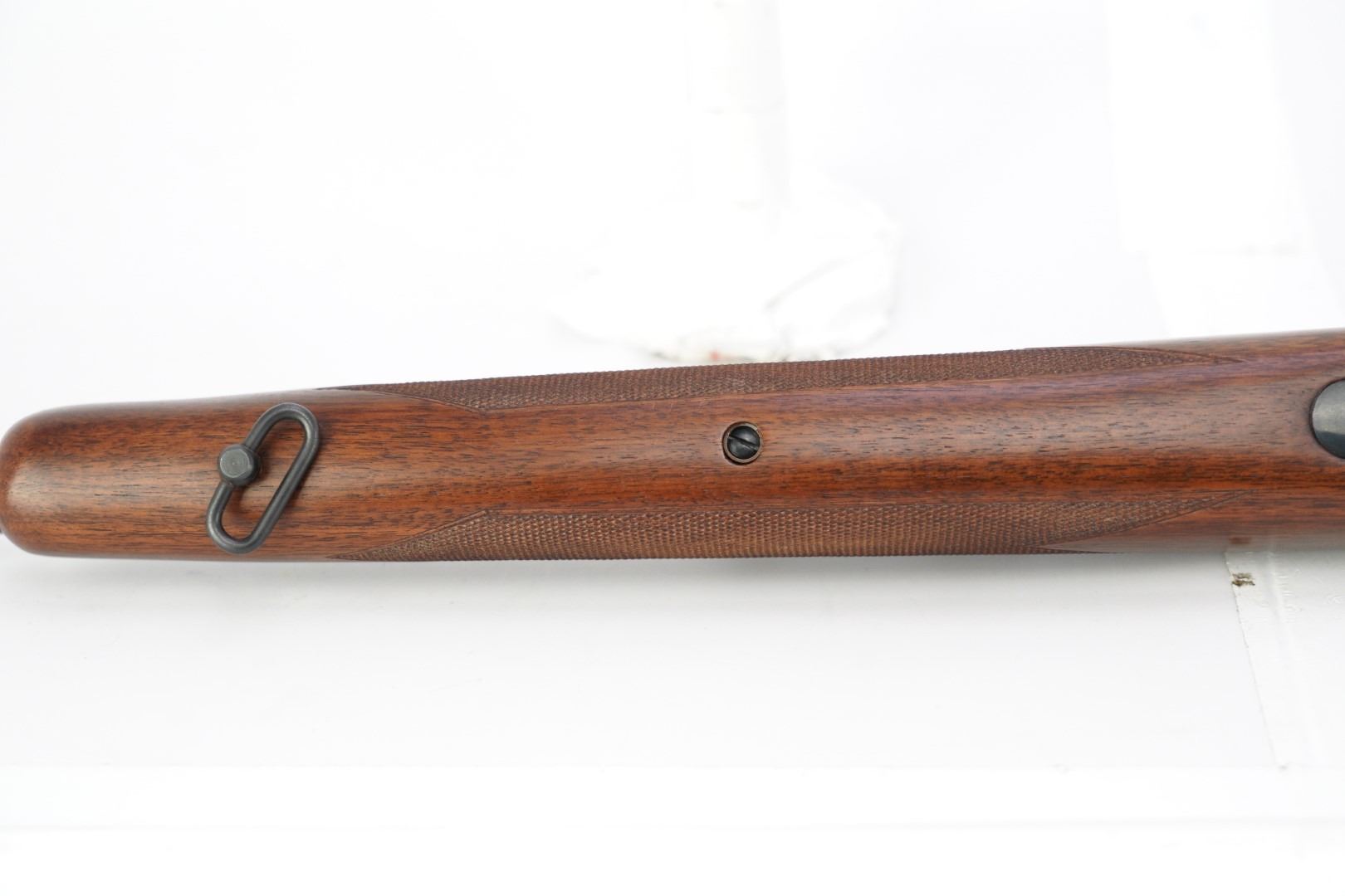 Stock Configuration & Condition: The stock is one-piece checkered walnut with pistol grip, straight comb, checkered steel buttplate and sling swivels front and rear. The stock has a few minor marks with no chips or cracks. The checkering is well defined. There are no chips or cracks. The LOP measures 13 1/2" from the front of the trigger to the back of the buttplate. The stocks rate in about excellent overall condition as restored.