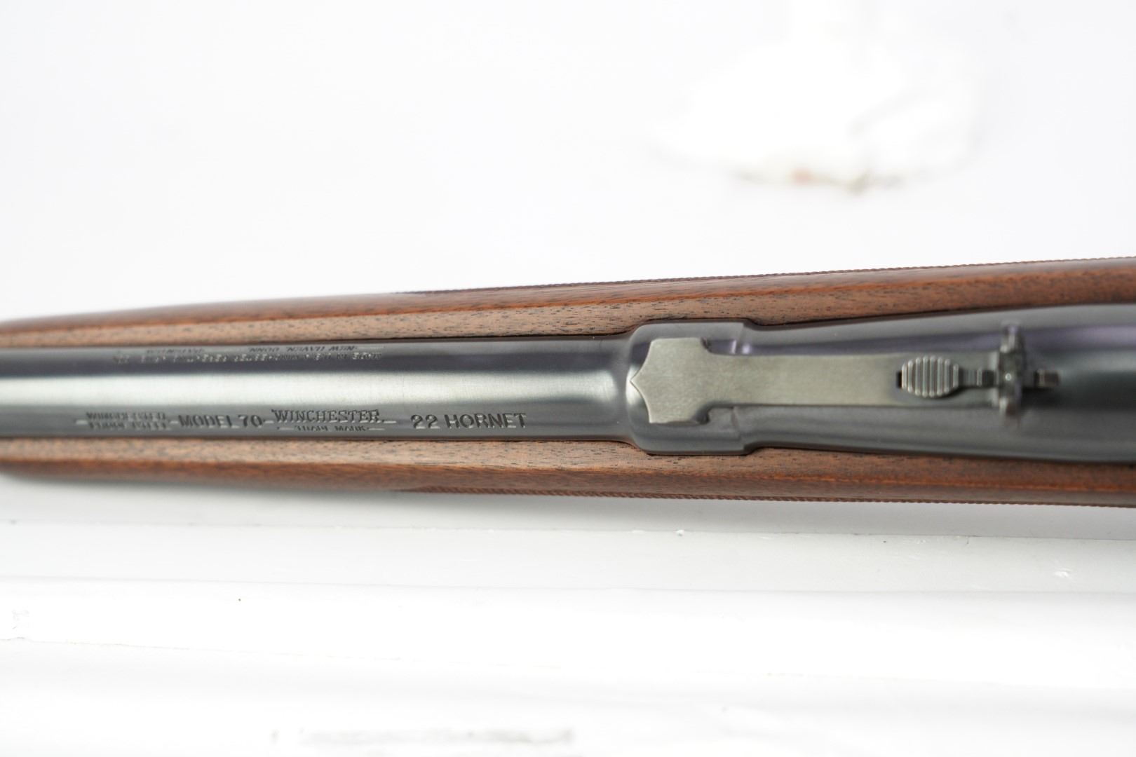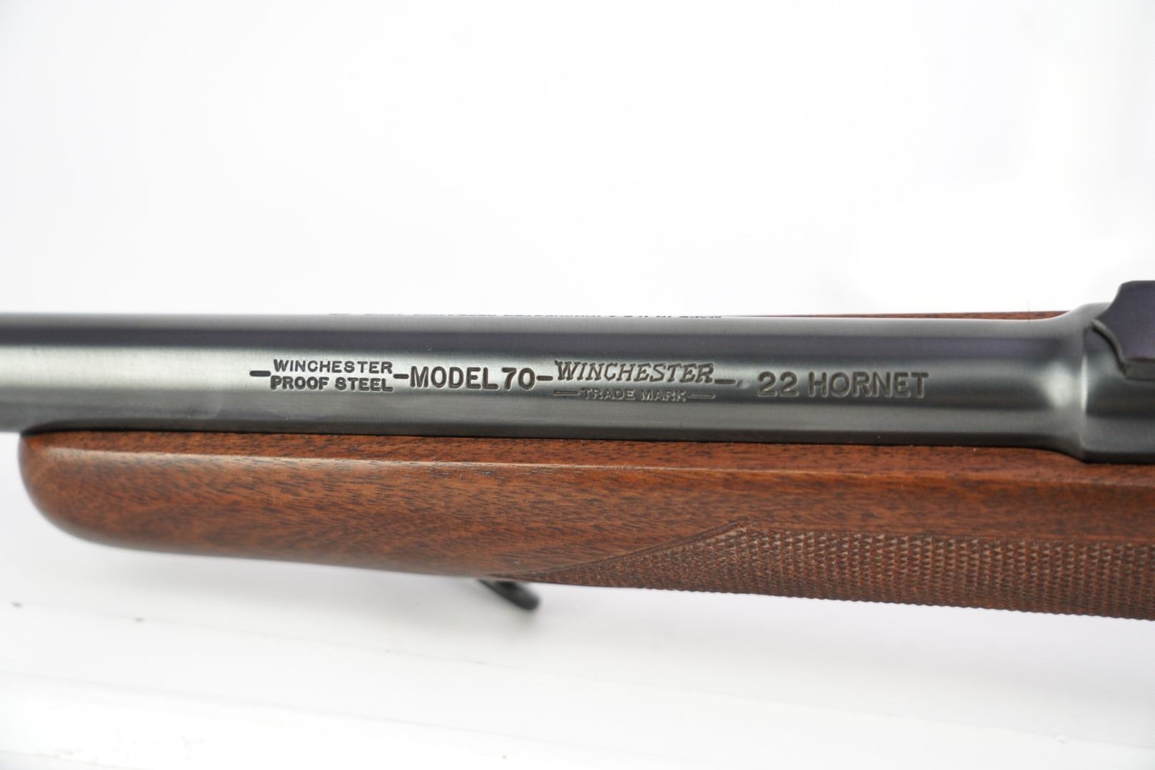 Our Assessment: This is a vintage pre-1964 Winchester Model 70 Carbine; this example has a receiver manufactured in 1937. Chambered in .22 Hornet, a lesser known cartridge but one that is by all accounts extremely accurate. It was once cited to be the most accurate centerfire cartridge the technicians at Winchester had ever seen. This rifle is in excellent condition as restored, retaining the great majority of its new finish, a great bore and strong mechanics. The Pre-64 Winchesters have sincere collector interest, especially a .22 Hornet Carbine such as this one, and this would be a wonderful addition—or an incredible start—to a Winchester collection. Good luck and happy bidding!