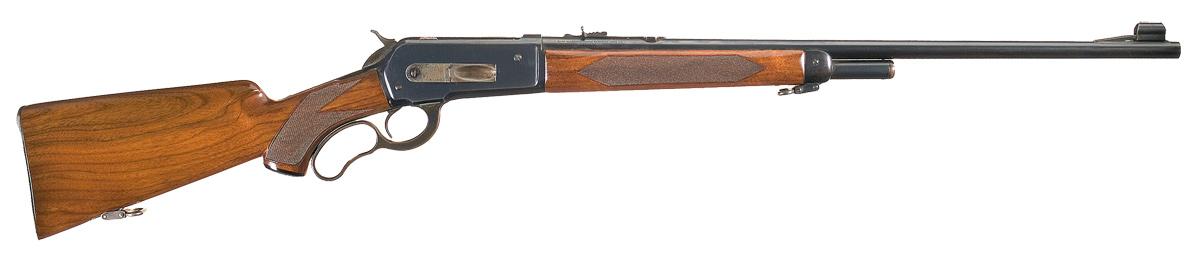 Condition: Fine. The barrel, magazine and receiver retain 95% original finish with some thinning on the barrel and some edge wear on the receiver. The magazine cap has a smooth brown patina and there is some minor flaking on the forend cap. The lever retains traces of original finish (mainly on the inside of the loop and in protected areas) with the balance having a smooth silver brown patina. The wood is refinished with a small chip repair on the upper left side of the wrist at the receiver, a few minor scuffs and dings, and sharp professionally recut checkering. Clear crisp markings. The action is excellent.