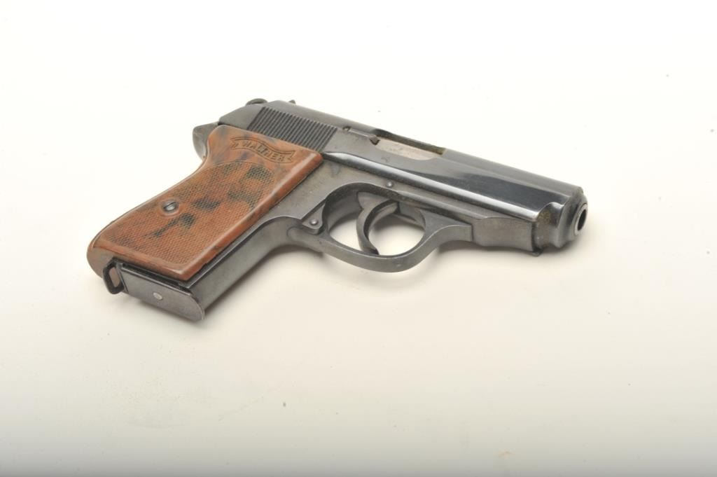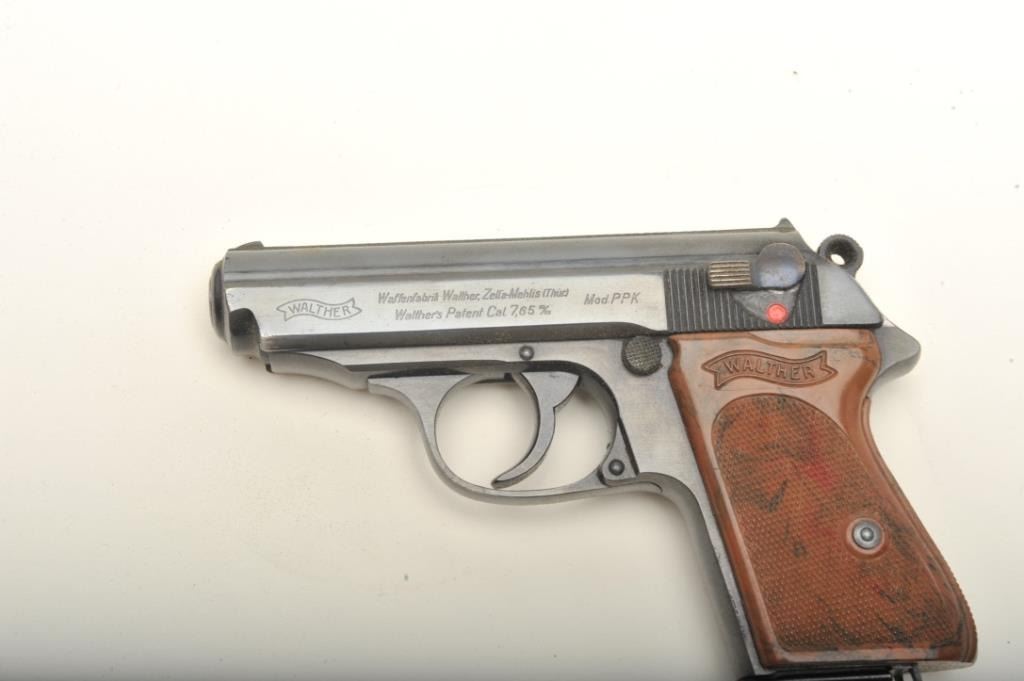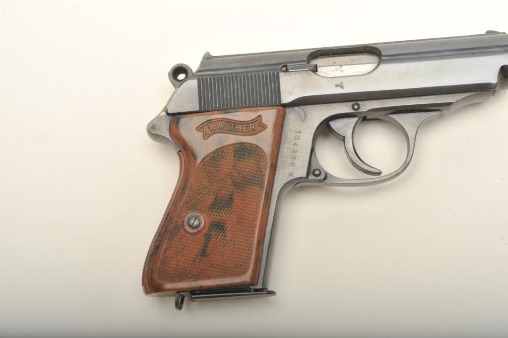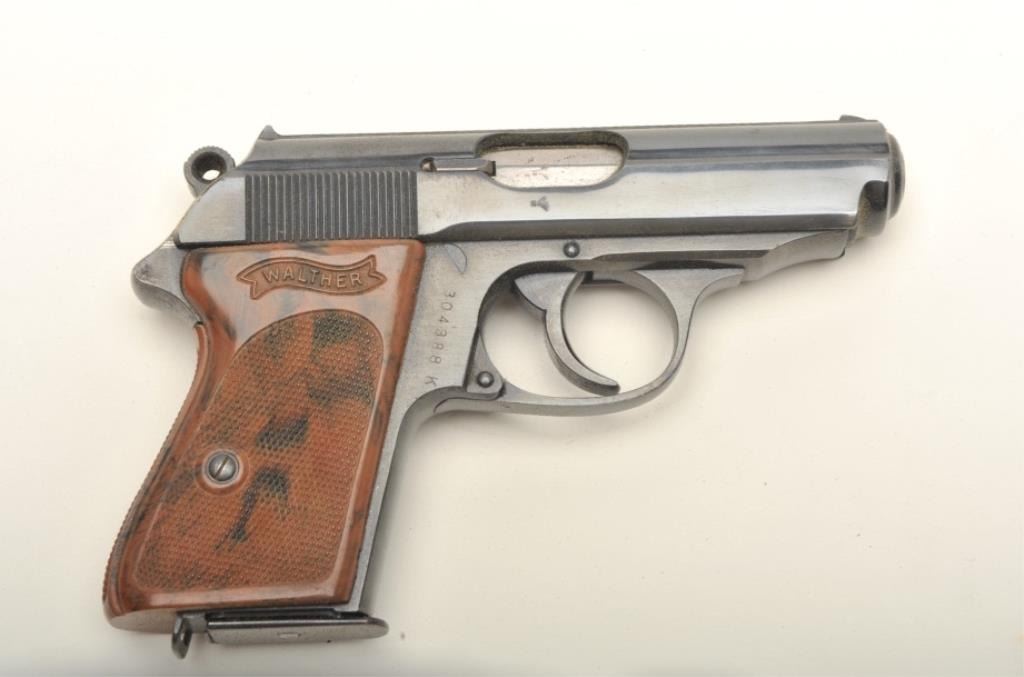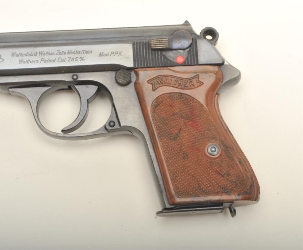 Pre-War Nazi commercial inspected Walther PPK in .32 ACP caliber remaining in fine original condition, S/N 304388K. This pistol shows 96%-99% original bright commercial blue finish with minute losses at high points and edges. Sharp and crisp overall. The grips are also excellent with minimal scratches and almost imperceptible tiny crack and scratch. Fire blue on the safety and small parts. A strong 9.5 on a 1-10 scale and very hard toimprove upon. Absolutely collector’s grade. (C&R/PPT) Est.: $1500-$3000