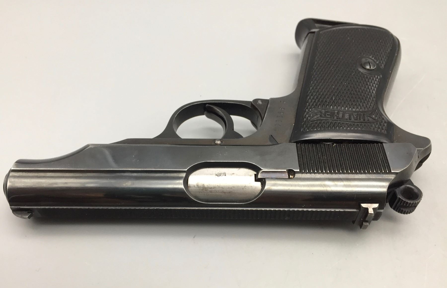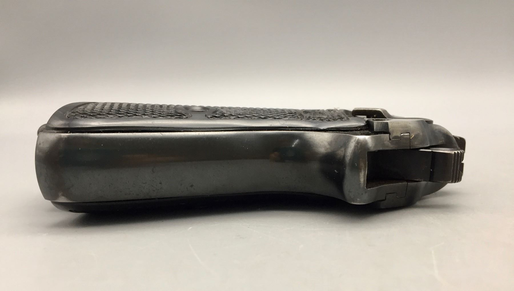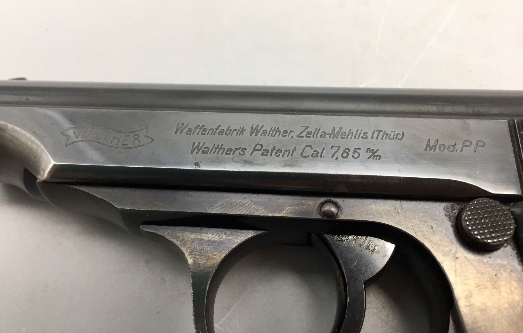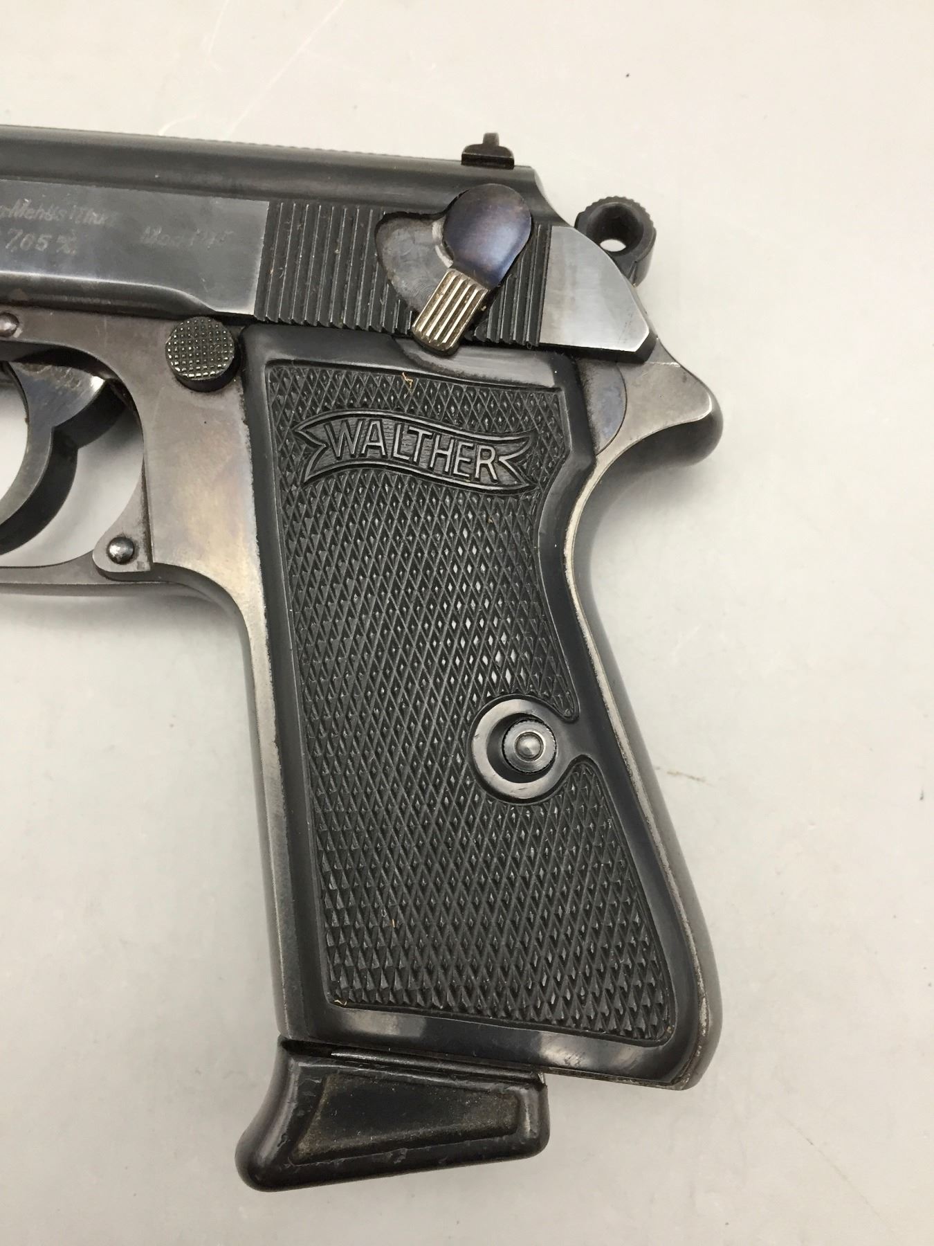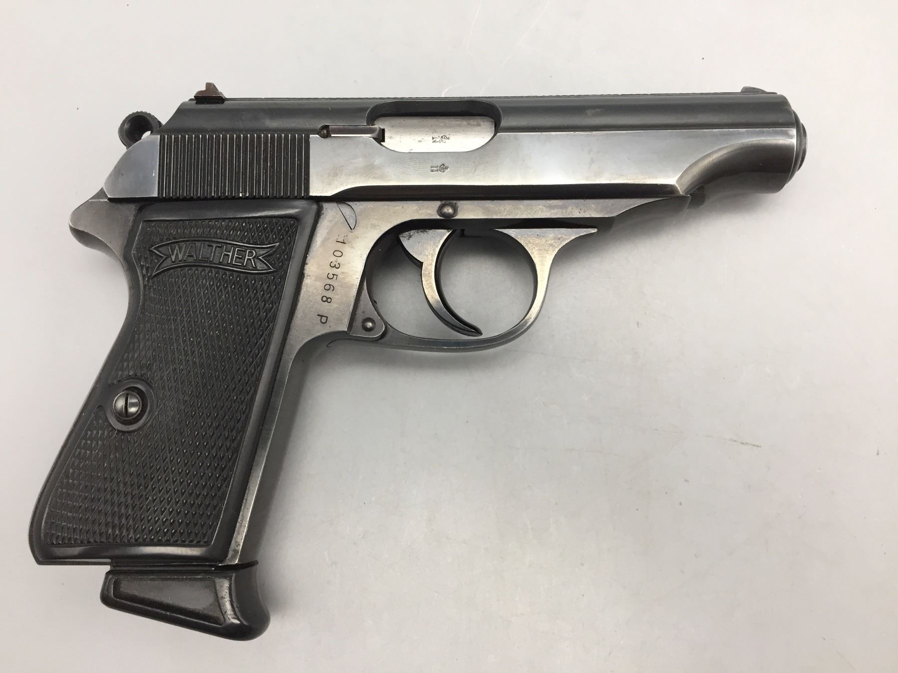 Description: Featured for sale in this lot is a Walther PP, 7.65 caliber pistol with blued steel finish and original, hard rubber, checkered grips and also includes a leather holster with an extra clip. This is a pre-war Walther. Maker: Walther. Approx. Age: Circa late 1930s based on serial # 103568. Size: Standard for this model. 7.65 (.32 auto) Cal.. Condition: Very good for its age, minor wear expected. Retains much of its original finish. Please look closely at the pictures - they are an important part of our description. Shipping: There will be a $10 handling / packaging fee for shipping this lot. The actual cost of postage will be added on top of that. *****This firearm requires an FFL Transfer*****