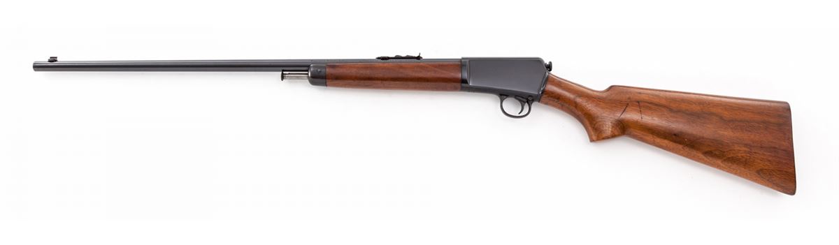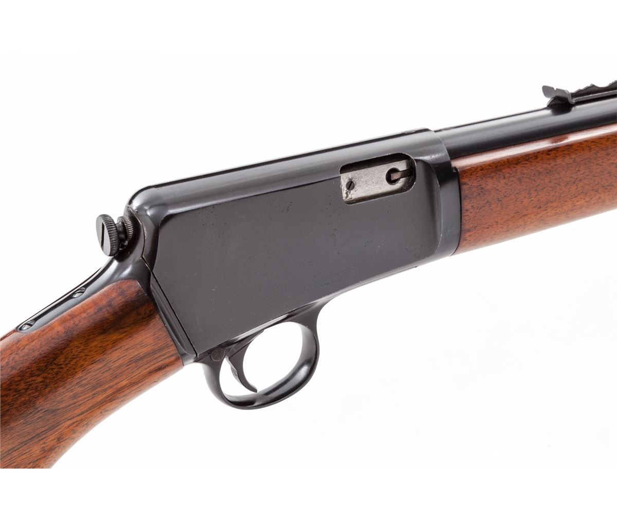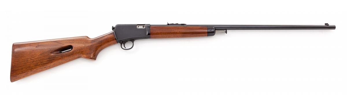 Pre-War Winchester Model 63 Semi-Automatic Rifle, #41018A, .22 LR cal., 23'' barrel, blue finish, smooth pistol-grip walnut stock. Mfg'd 1940. Condition is about excellent retaining approx. 989% blue, with light dings and scuffs to stock. Action is crisp, bore is mirror bright. Est.: $800-$1,200. (C&R)