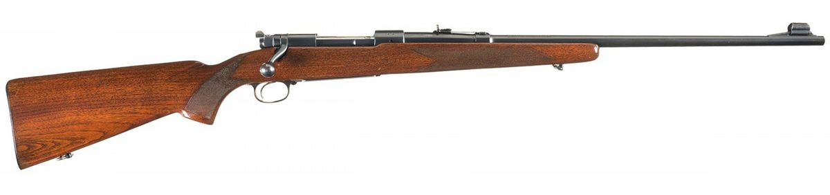 Manufactured in 1937. Barrel marked "30 Govt '06" (which is correct for early production model 70's). Standard Winchester markings including the factory proof on the barrel and receiver. Hooded ramp front sight, elevation adjustable rear sight, and receiver tapped for scope/sight mounting. Polished bolt numbered to gun, pre-war safety and cloverleaf receiver tang. Checkered pistol grip stock with sling swivels and checkered steel buttplate.