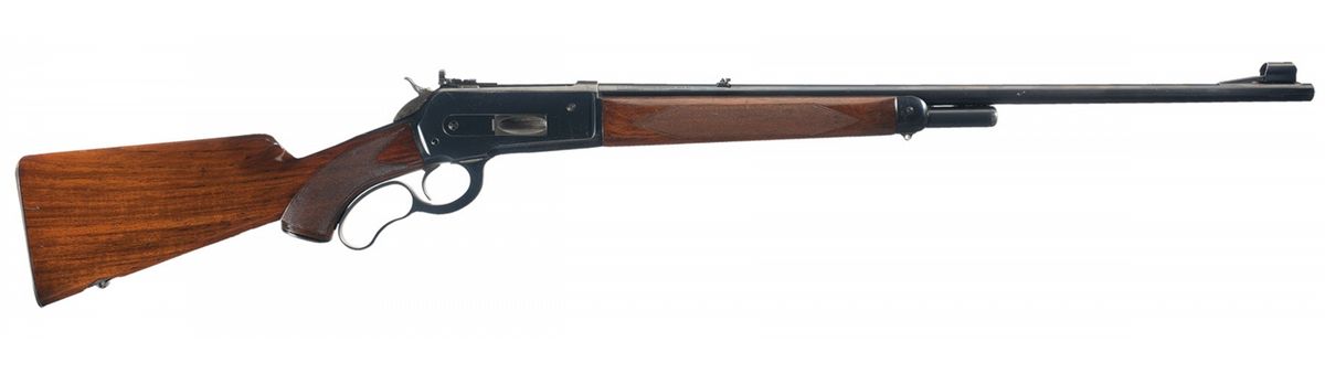 Manufactured in 1937 with a hooded, ramp front sight with stippled ramp, elevation adjustable flip up rear sight and a bolt mounted adjustable rear peep sight with missing apeture. This example has the long tang with the early barrel marking and a checkered hammer. Fitted with a diamond pattern, checkered walnut, semi-beavertail forearm and pistol grip stock with hard rubber grip cap, sling studs and a checkered steel buttplate.