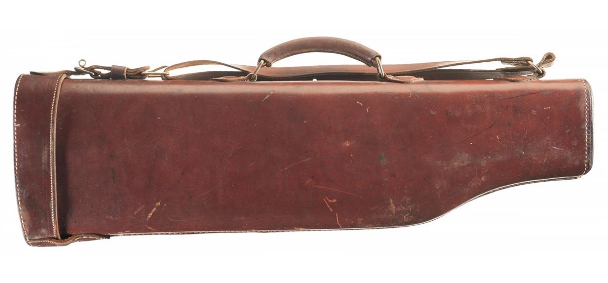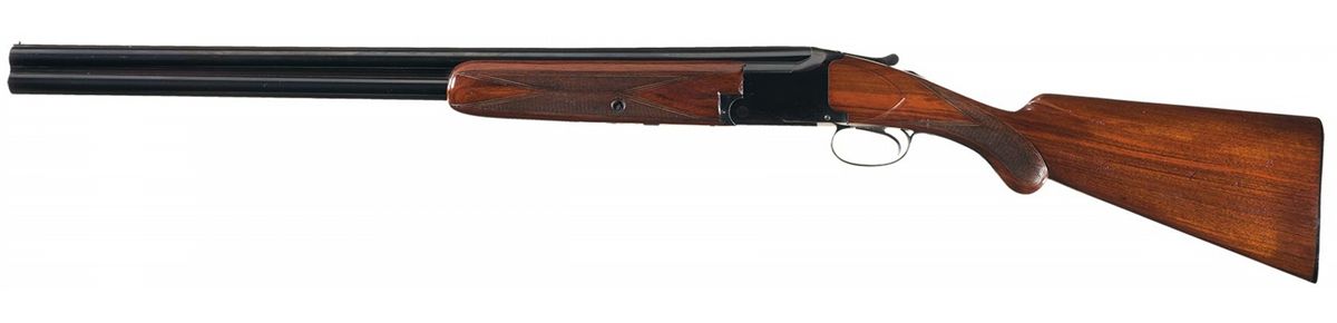 Manufactured between 1931 and 1939. There is a single steel bead sight on the solid rib, the barrels are marked "*" and "**-" for improved cylinder/full and the chambers are 2 3/4 inches with ejectors. The trigger plate has two slots for double triggers and is fitted with a single nonselective trigger. Mounted on a multi-point checkered walnut forearm and round knob pistol grip stock with a hard rubber buttplate. Length of pull is 13 1/2 inches. With a leather mutton case.