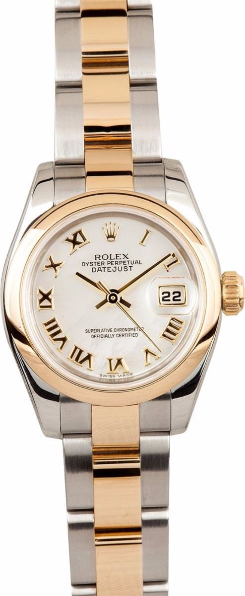 Model/Style-Ladies Datejust 179163 Serial/Year-Random Features-Automatic movement w/ date, Quickset, scratch-resistant sapphire crystal, waterproof screw-down crown Case-Stainless steel w/ 18k yellow gold smooth bezel (26mm) Bracelet-Stainless steel and 18k yellow gold Oyster #9143