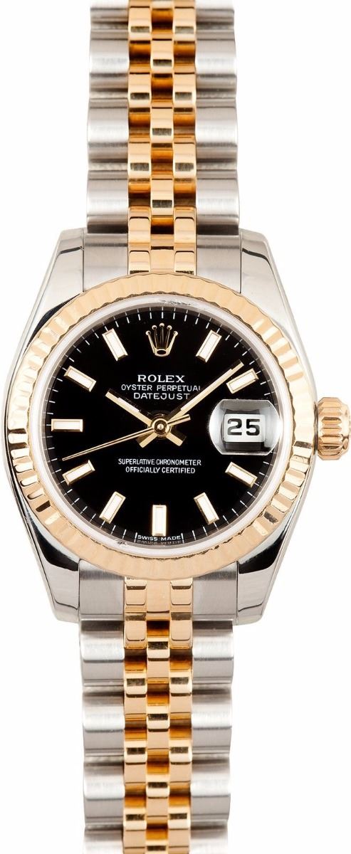 Model/Style-Ladies DateJust 179173 Serial/Year-Random Features-Automatic movement w/ date, 31 jewels, Quickset, scratch-resistant sapphire crystal, waterproof screw-down crown Case-Stainless steel w/ 18k yellow gold fluted bezel (26mm) Bracelet-Stainless steel and 18k gold Jubilee #9139