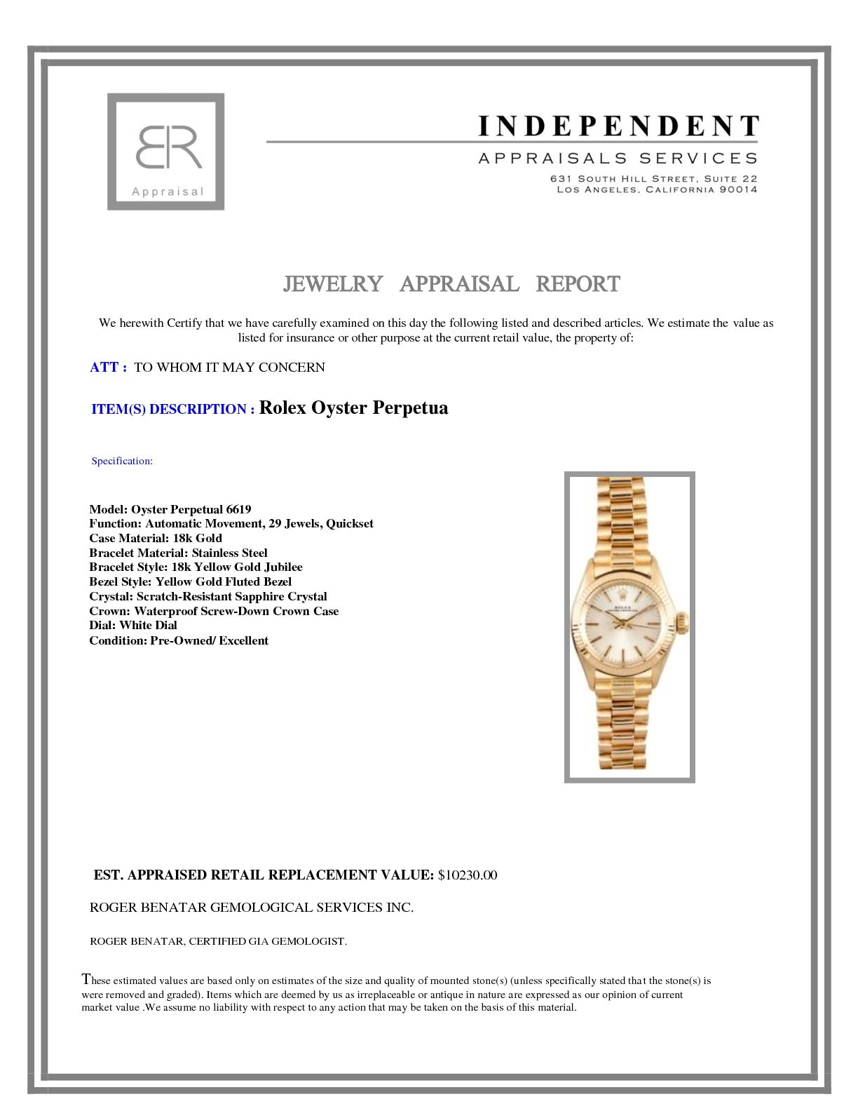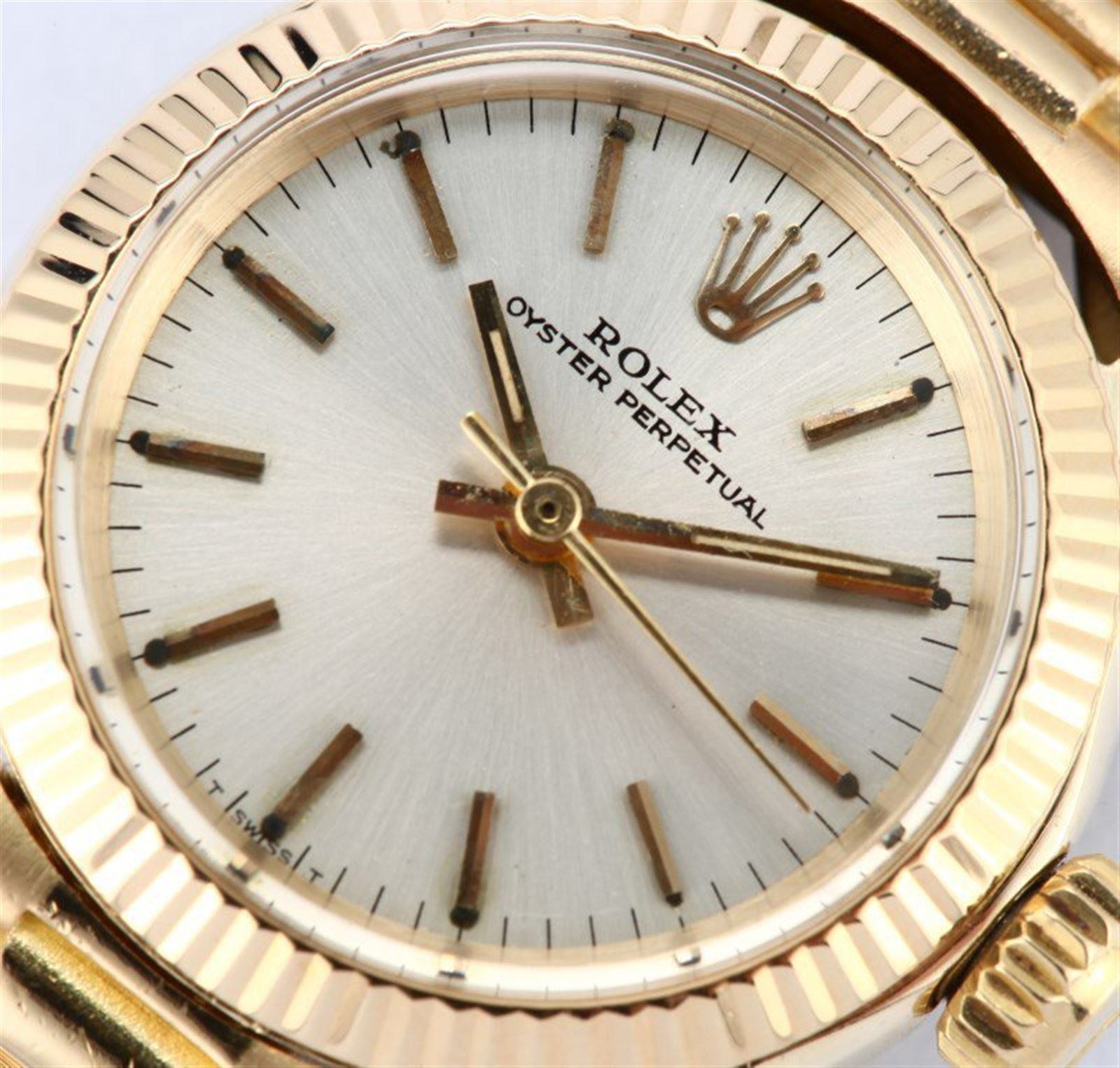 Model/Style-Oyster Perpetual 6619 Features-Automatic movement, 29 jewels, acrylic crystal, waterproof screw-down crown Case-18K gold w/ yellow gold fluted bezel Bracelet-18K yellow gold Jubilee #9171