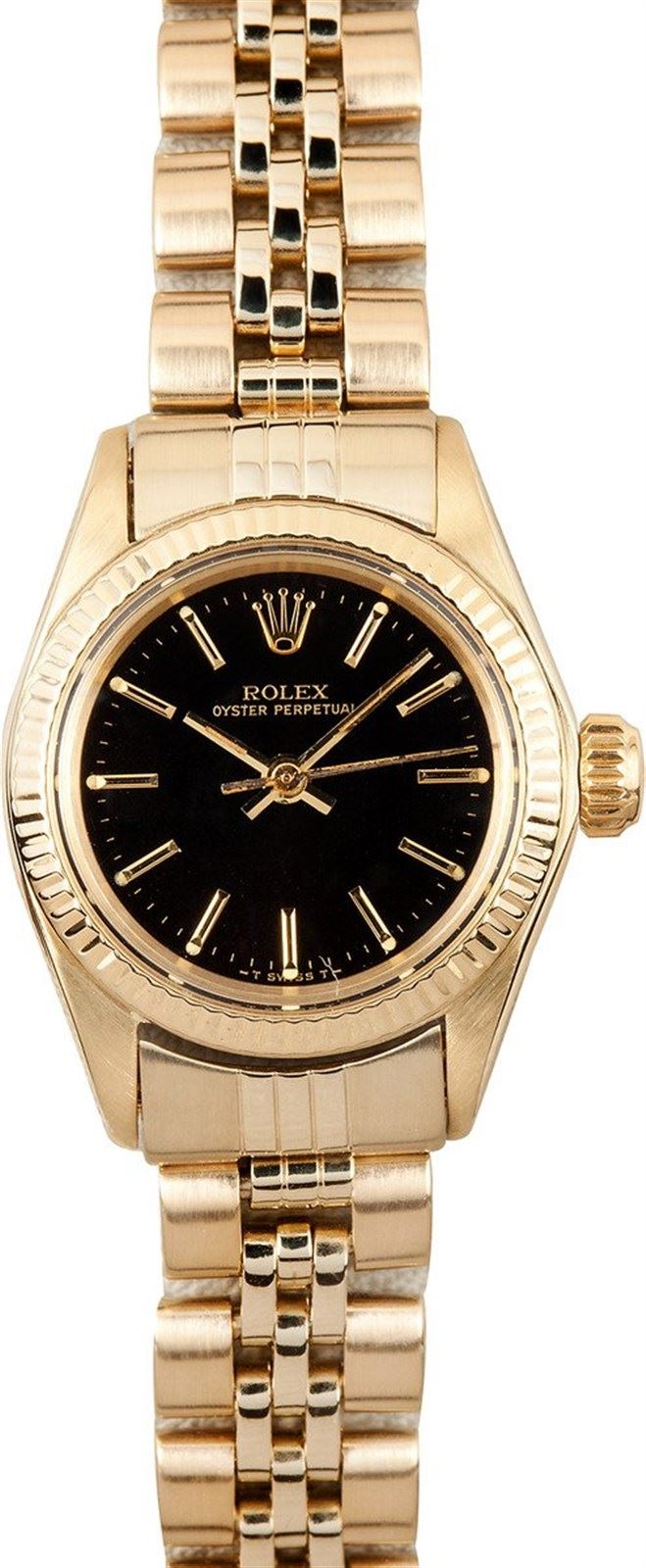Model/Style-Oyster Perpetual 6719 Features-Automatic movement, acrylic crystal, waterproof screw-down crown Case-14k yellow gold (26mm) w/ fluted bezel Bracelet-14k yellow gold Rolex Jubilee #9174