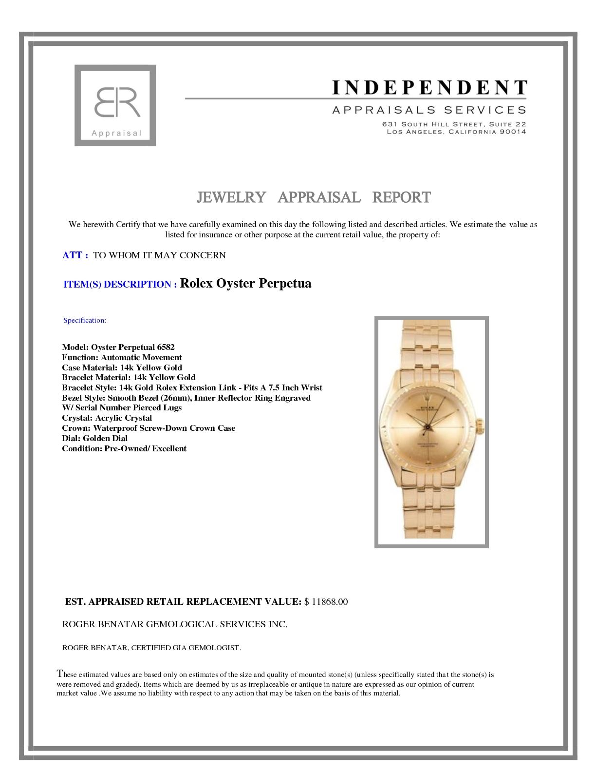 Not all jewelry, watches or loose stones are appraised and the appraisals are provided for bidders only in certain instances at the discretion of the Company. Appraisals, if any should be use to verify gemstone and or metal weights. The appraisals should not be used for valuation of any item. No guarantee, warranty or representation is intended by the Company in any appraisal. All dimensions and weights of such lots are approximate and are consistent with standards and practices in the industry. Condition reports are provided as a service to the prospective buyer. Bidders should take note that such descriptions are not warranties and that watches may need general service, change of battery or further repairs for which the buyer is solely responsible