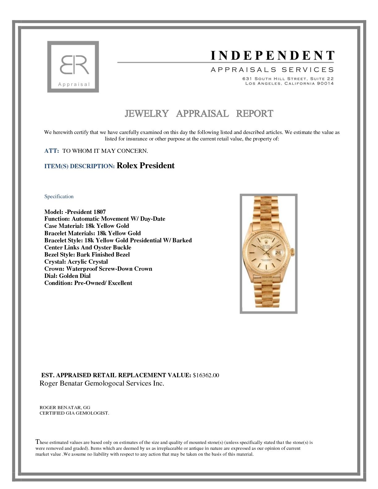 Not all jewelry, watches or loose stones are appraised and the appraisals are provided for bidders only in certain instances at the discretion of the Company. Appraisals, if any should be use to verify gemstone and or metal weights. The appraisals should not be used for valuation of any item. No guarantee, warranty or representation is intended by the Company in any appraisal. All dimensions and weights of such lots are approximate and are consistent with standards and practices in the industry. Condition reports are provided as a service to the prospective buyer. Bidders should take note that such descriptions are not warranties and that watches may need general service, change of battery or further repairs for which the buyer is solely responsible