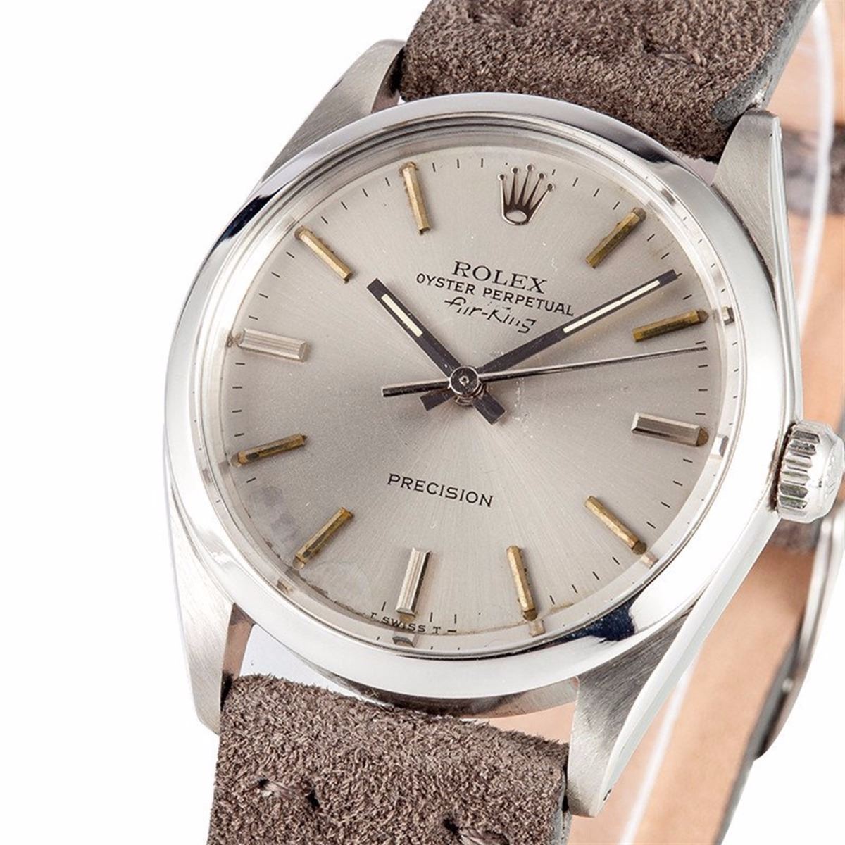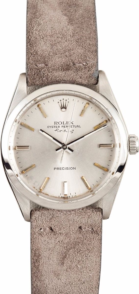 Model/Style-Air-King 5500 Serial/Year-Random Features-Automatic movement, acrylic crystal, waterproof screw-down crown Case-Stainless steel w/ polished bezel (34mm) Bracelet-Complimentary Italian Grey Suede Strap (other strap options available at no cost to customer #9010