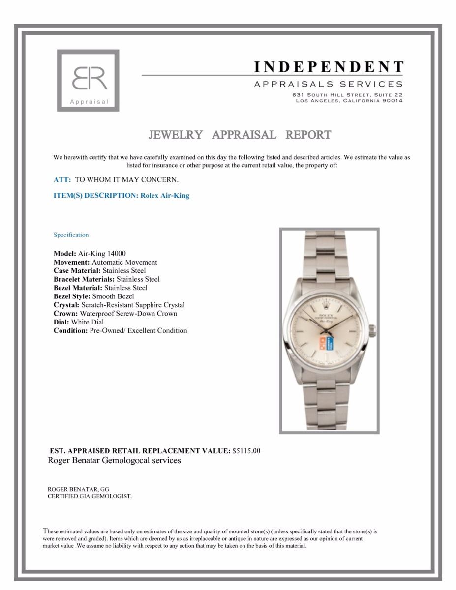 Model/Style-Air-King 14000 Serial/Year-Random Features-Automatic movement (3000), scratch-resistant sapphire crystal, waterproof screw-down crown Case-Stainless steel w/ smooth bezel (34mm) Bracelet-Stainless Steel Oyster #9008