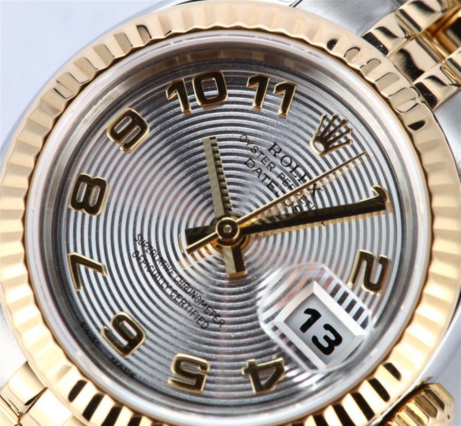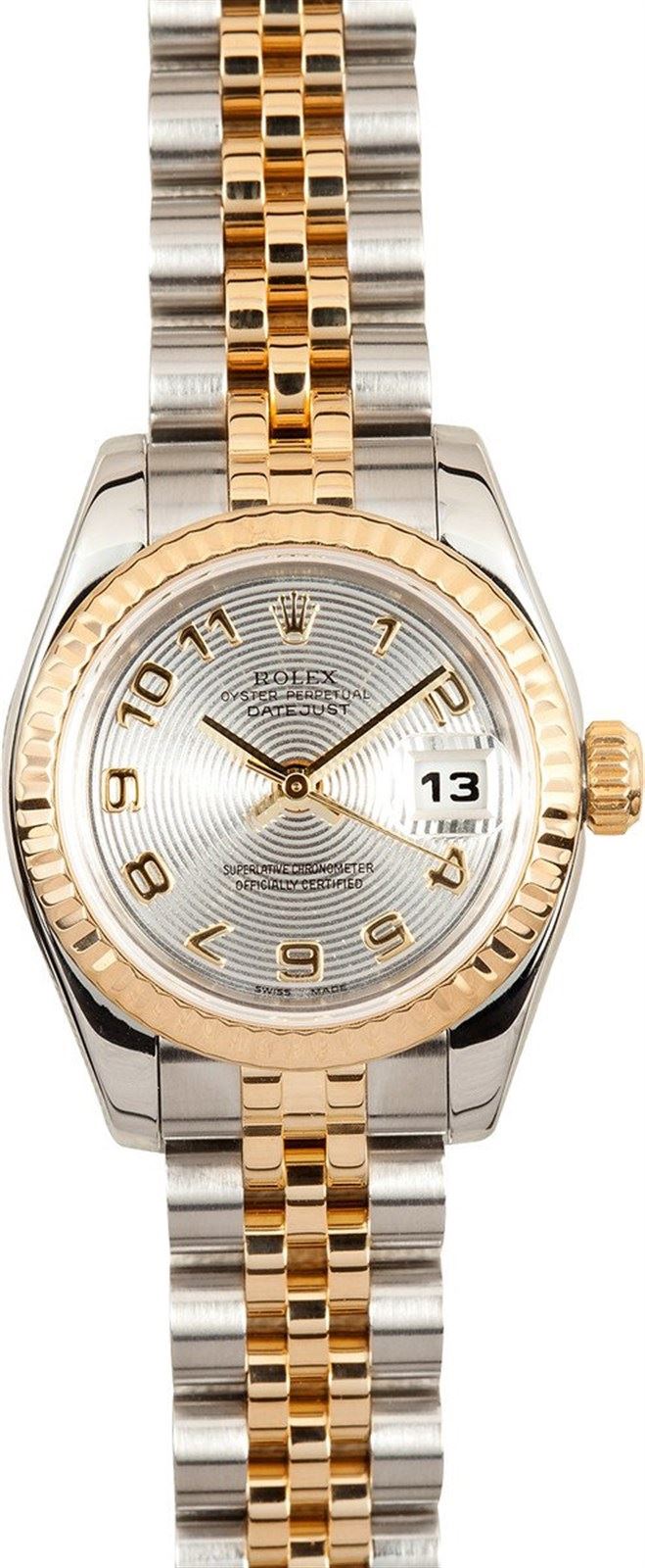 Model/Style-DateJust 179173 Serial/Year-Random Features-Automatic movement w/ date, Quickset, scratch-resistant sapphire crystal, waterproof screw-down crown Case-Stainless steel w/ 18k yellow gold fluted bezel (26mm) Bracelet-Stainless steel and 18k yellow gold Jubilee w/ hidden clasp #9036