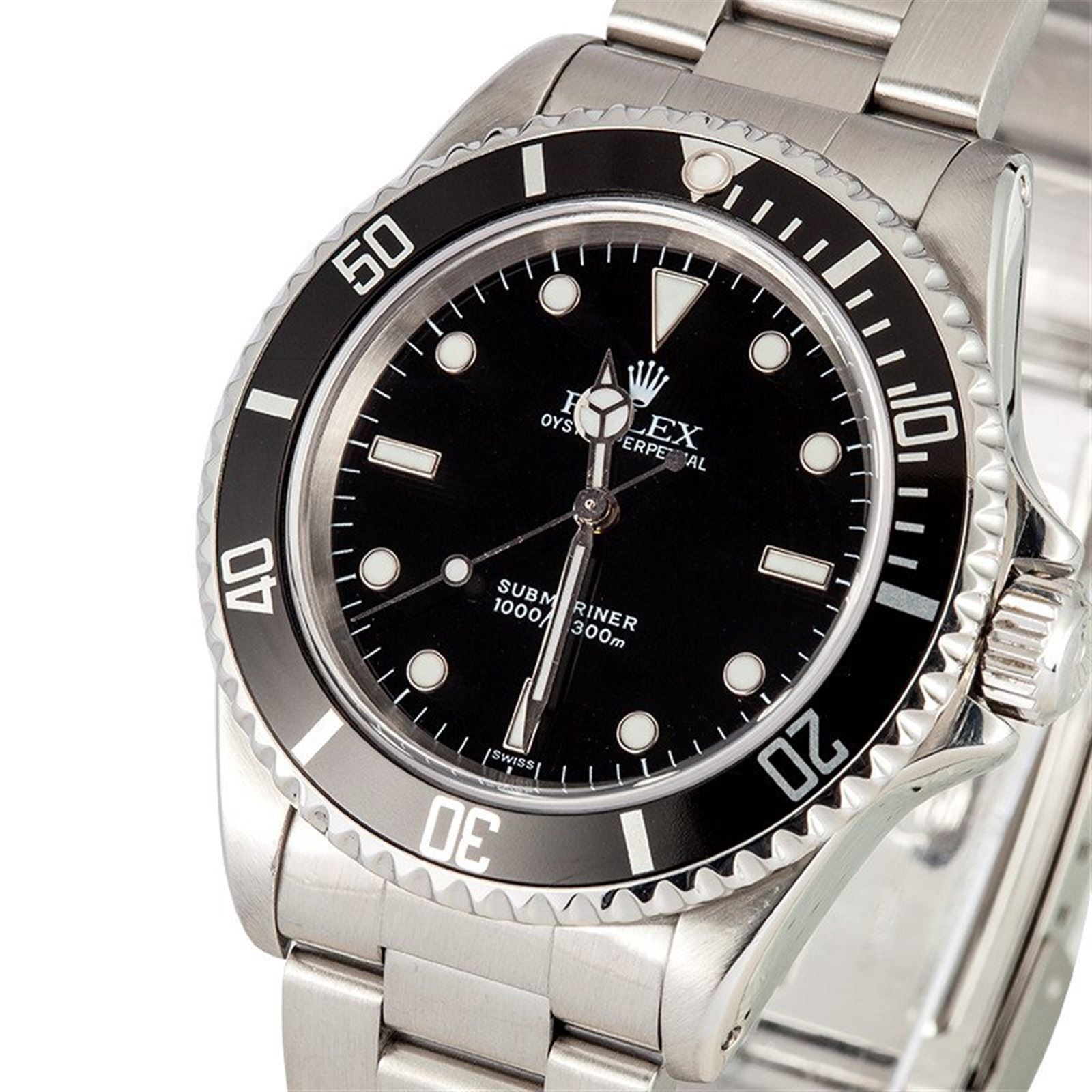 Model/Style-Submariner 14060 Serial/Year-Random Features-Automatic movement, waterproof screw-down crown, unidirectional rotatable time-lapse diver's bezel, scratch-resistant sapphire crystal Case-Stainless steel (40 mm) Bracelet-Stainless steel Oyster #9192