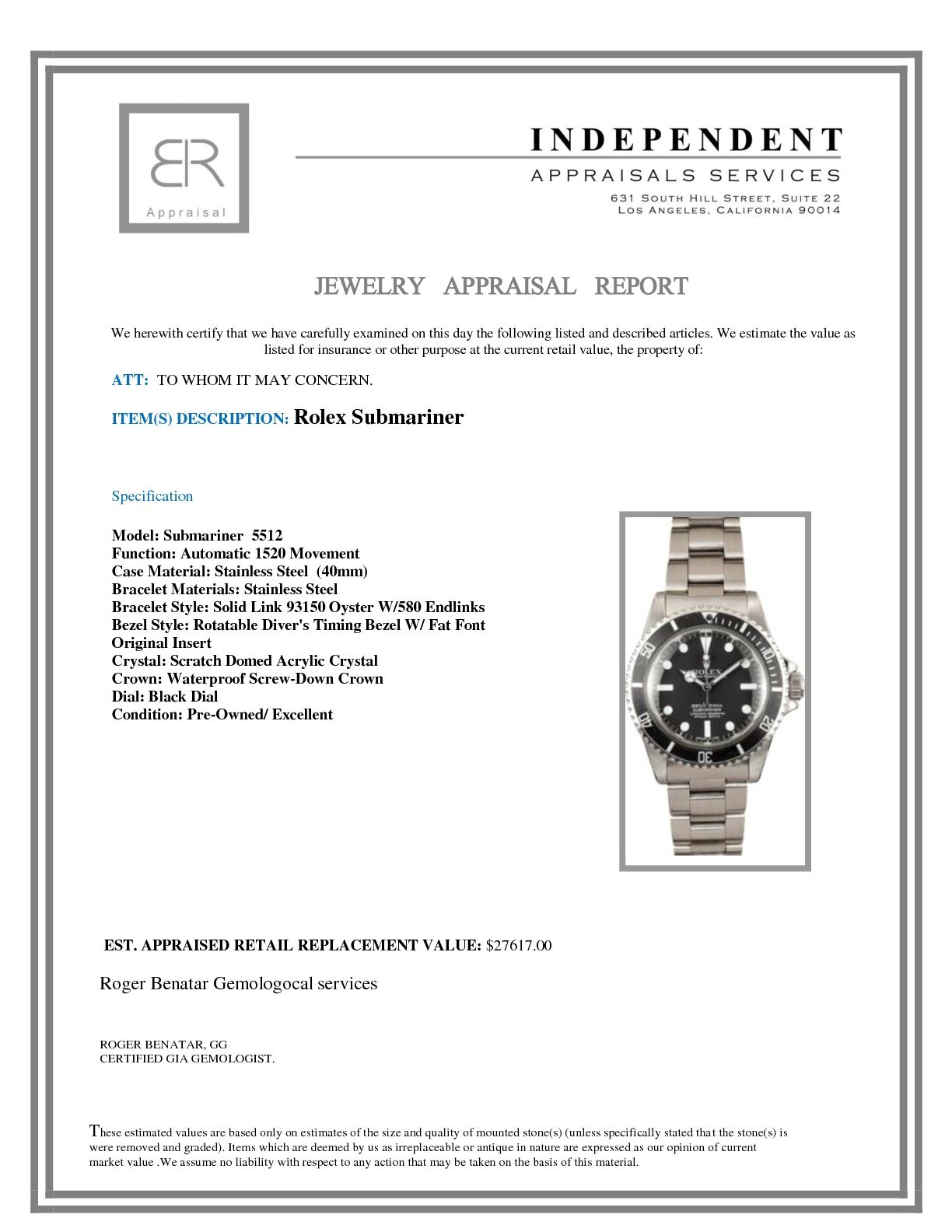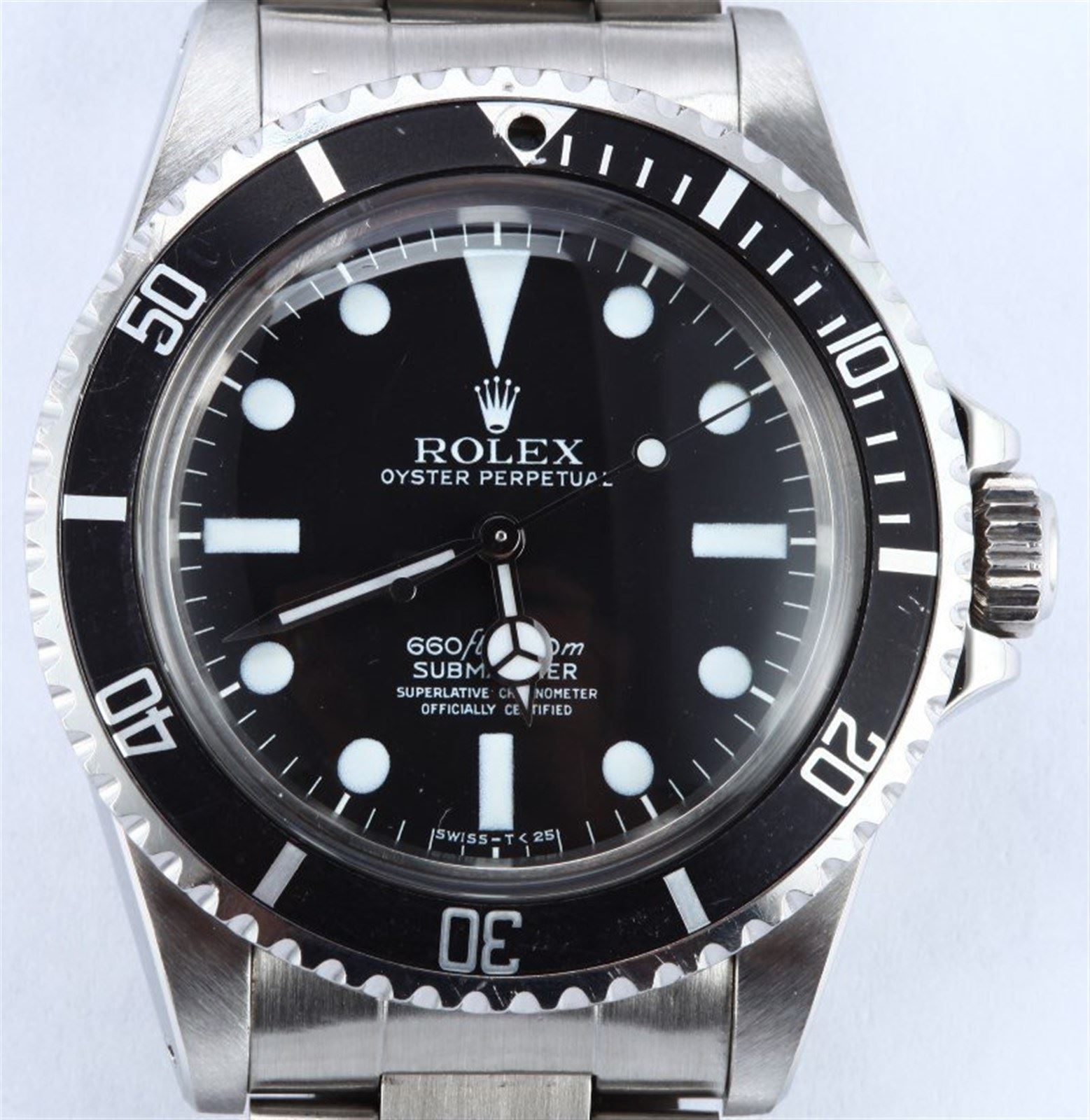 Model/Style-Submariner 5512 Serial/Year-Random Features-Automatic 1520 movement, domed acrylic crystal, waterproof screw-down crown Case-Stainless steel, rotatable diver's timing bezel w/ fat font original insert Bracelet-Solid link 93150 oyster w/580 endlinks. Bracelet is in excellent condition with minimal stretch. #9272