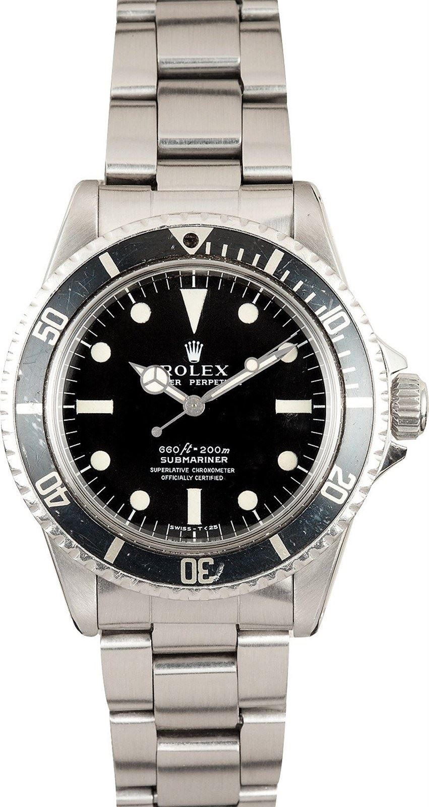 Model/Style-Submariner 5512 Serial/Year-Random Features-Automatic 1530 movement, domed acrylic crystal, waterproof screw-down crown Case-Stainless steel, rotatable diver's timing bezel, pierced lugs, aged bezel insert, excellent bevels Bracelet-Replaced 93150 Oyster w/ 12 links & 580 end links #9274