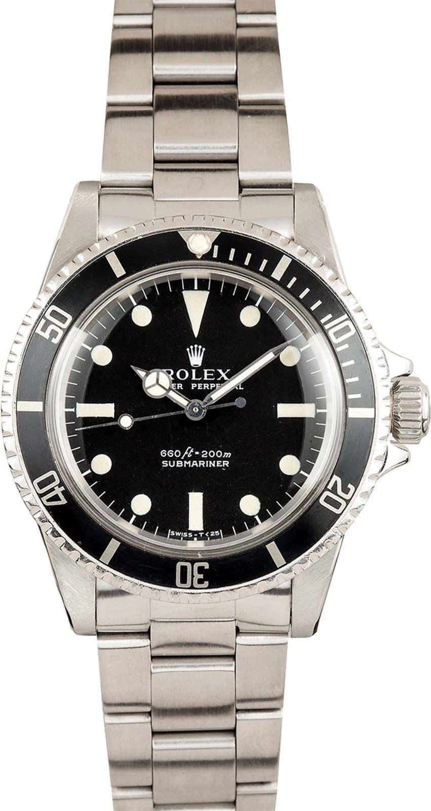 Model/Style-Submariner 5513 Serial/Year-Random Features-Automatic caliber 1520 movement, rotating diver's bezel, acrylic crystal, water resistant screw down crown Case-Stainless steel case (40mm). Case is in mint condition with sharp beveled edges and original fat font insert. Water resistant screw down crown. Bracelet-Solid link 93150 oyster w/580 endlinks. Original bracelet is in mint condition with zero stretch. #9277