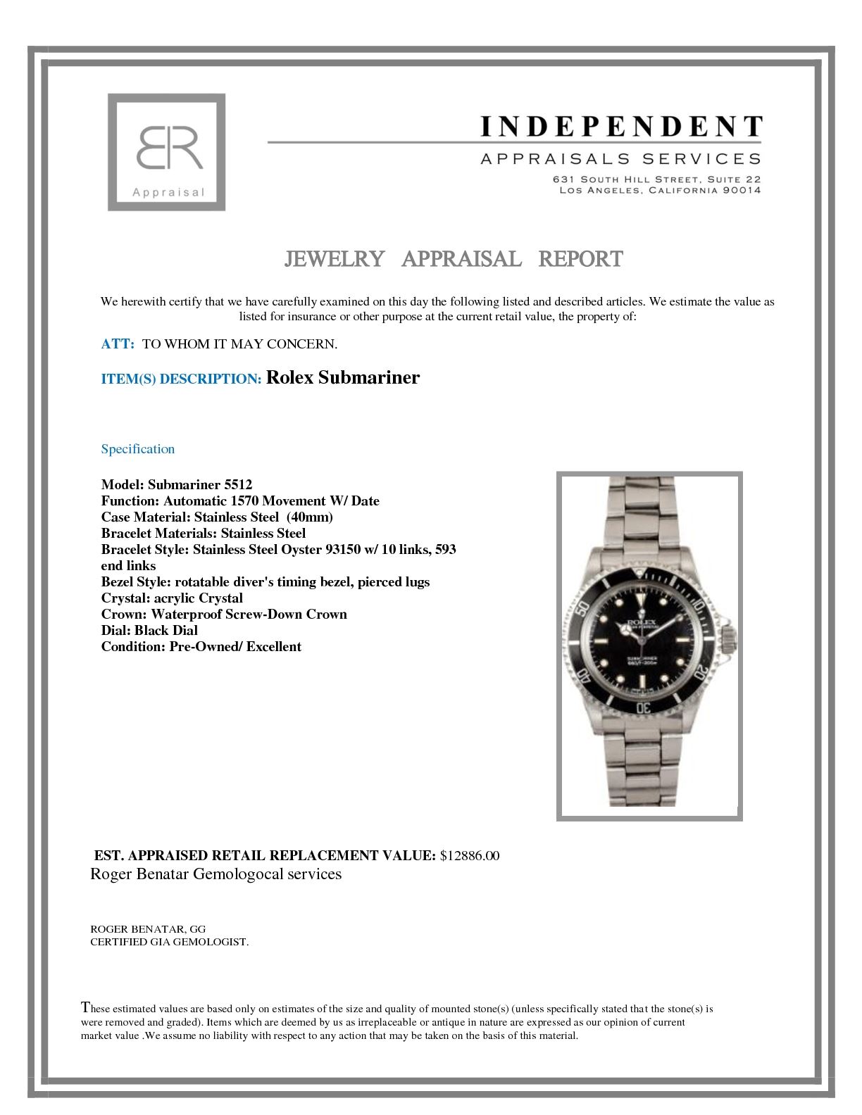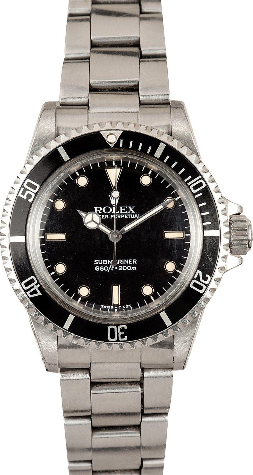 Model/Style-Submariner 5512 Serial/Year-Random Features-Automatic 1570 movement, domed acrylic crystal, waterproof screw-down crown Case-Stainless steel, rotatable diver's timing bezel, pierced lugs, aged bezel insert Bracelet-Stainless Steel Oyster 93150 w/ 10 links, 593 end links #9287