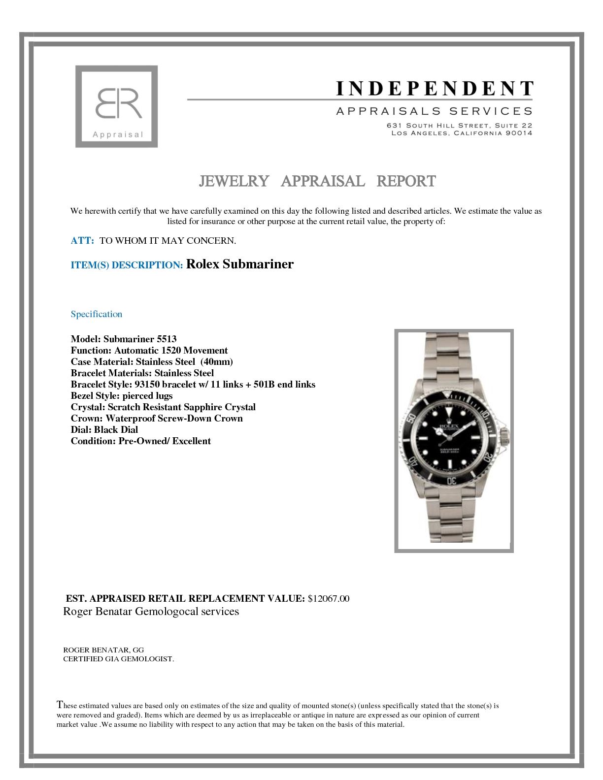 Not all jewelry, watches or loose stones are appraised and the appraisals are provided for bidders only in certain instances at the discretion of the Company. Appraisals, if any should be use to verify gemstone and or metal weights. The appraisals should not be used for valuation of any item. No guarantee, warranty or representation is intended by the Company in any appraisal. All dimensions and weights of such lots are approximate and are consistent with standards and practices in the industry. Condition reports are provided as a service to the prospective buyer. Bidders should take note that such descriptions are not warranties and that watches may need general service, change of battery or further repairs for which the buyer is solely responsible