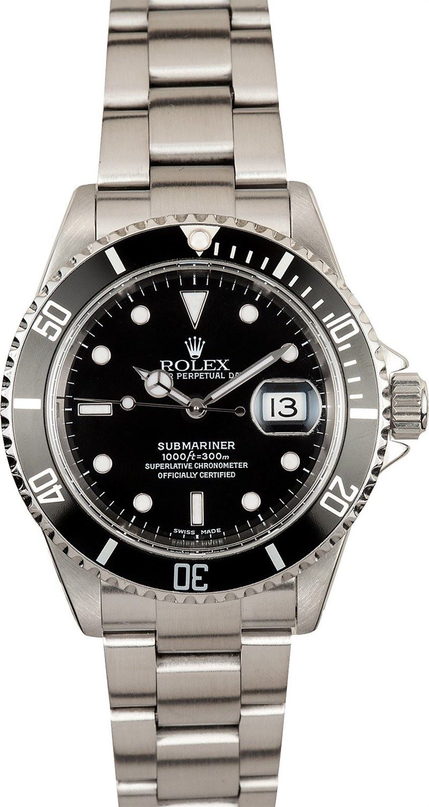Model/Style-Submariner 16610 Serial/Year-Random Features-Automatic movement w/date, waterproof screw-down crown, unidirectional rotatable time-lapse diver's bezel, scratch-resistant sapphire crystal Case-Stainless steel (40mm) Bracelet-Stainless steel Oyster #9267