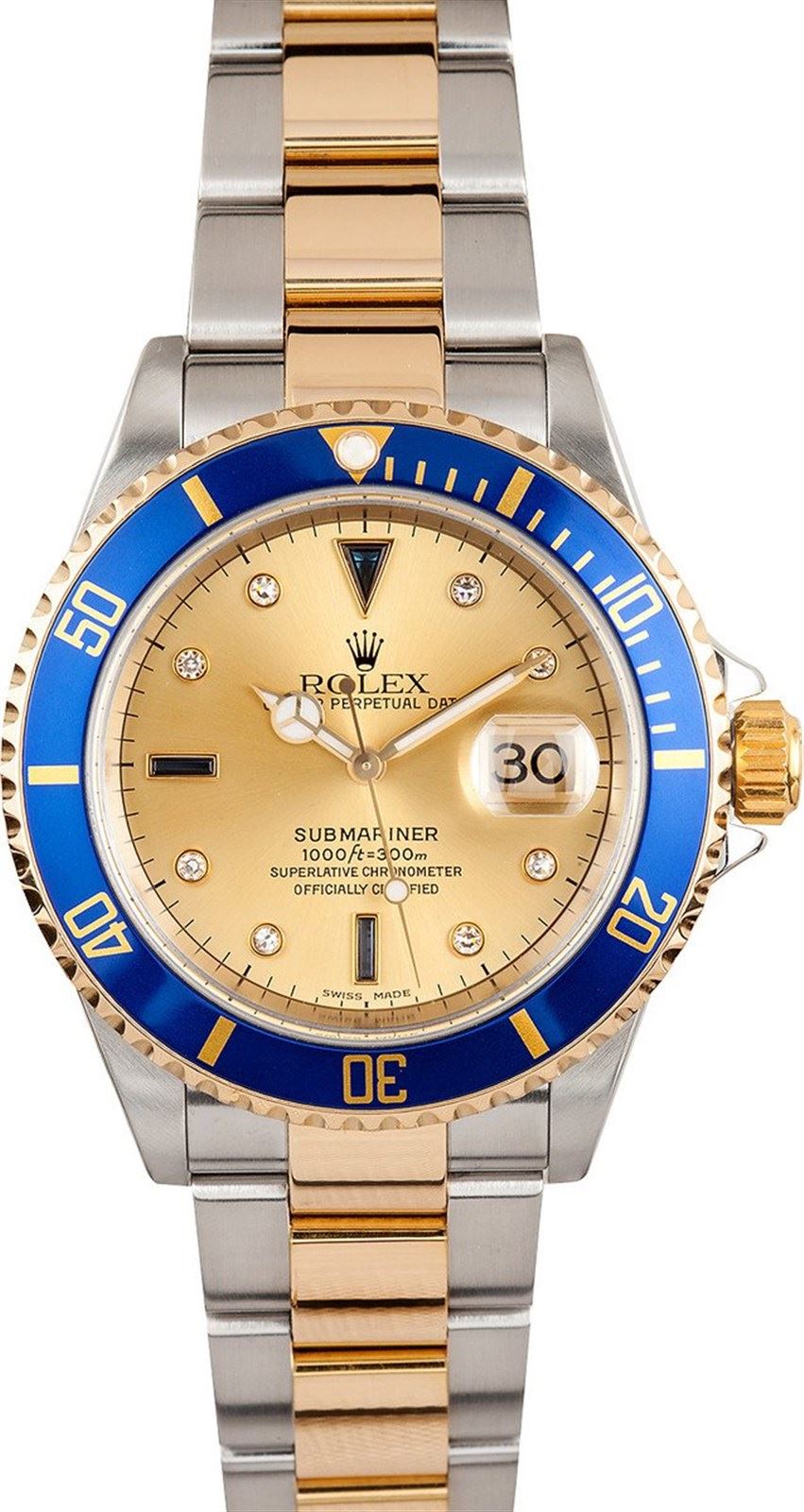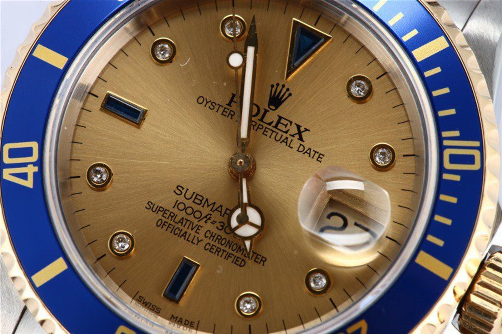 Model/Style-Submariner 16613 Serial/Year-Random Features-Automatic movement, waterproof screw-down crown, unidirectional rotatable time-lapse diver's bezel, scratch-resistant sapphire crystal Case-18k yellow gold & stainless steel (40mm) Bracelet-18k yellow gold and stainless w/ flip lock clasp #9250