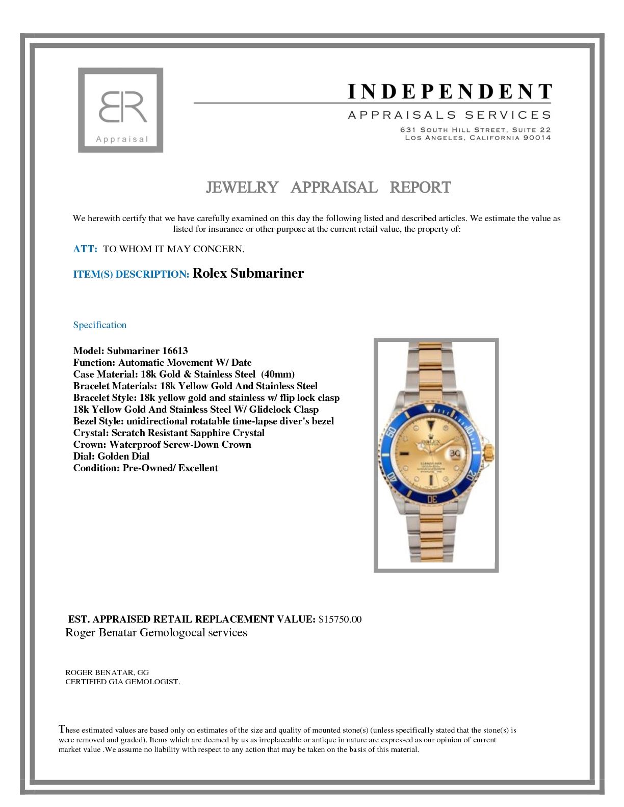 Not all jewelry, watches or loose stones are appraised and the appraisals are provided for bidders only in certain instances at the discretion of the Company. Appraisals, if any should be use to verify gemstone and or metal weights. The appraisals should not be used for valuation of any item. No guarantee, warranty or representation is intended by the Company in any appraisal. All dimensions and weights of such lots are approximate and are consistent with standards and practices in the industry. Condition reports are provided as a service to the prospective buyer. Bidders should take note that such descriptions are not warranties and that watches may need general service, change of battery or further repairs for which the buyer is solely responsible