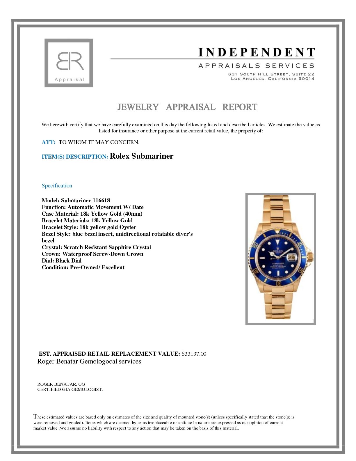 Not all jewelry, watches or loose stones are appraised and the appraisals are provided for bidders only in certain instances at the discretion of the Company. Appraisals, if any should be use to verify gemstone and or metal weights. The appraisals should not be used for valuation of any item. No guarantee, warranty or representation is intended by the Company in any appraisal. All dimensions and weights of such lots are approximate and are consistent with standards and practices in the industry. Condition reports are provided as a service to the prospective buyer. Bidders should take note that such descriptions are not warranties and that watches may need general service, change of battery or further repairs for which the buyer is solely responsible