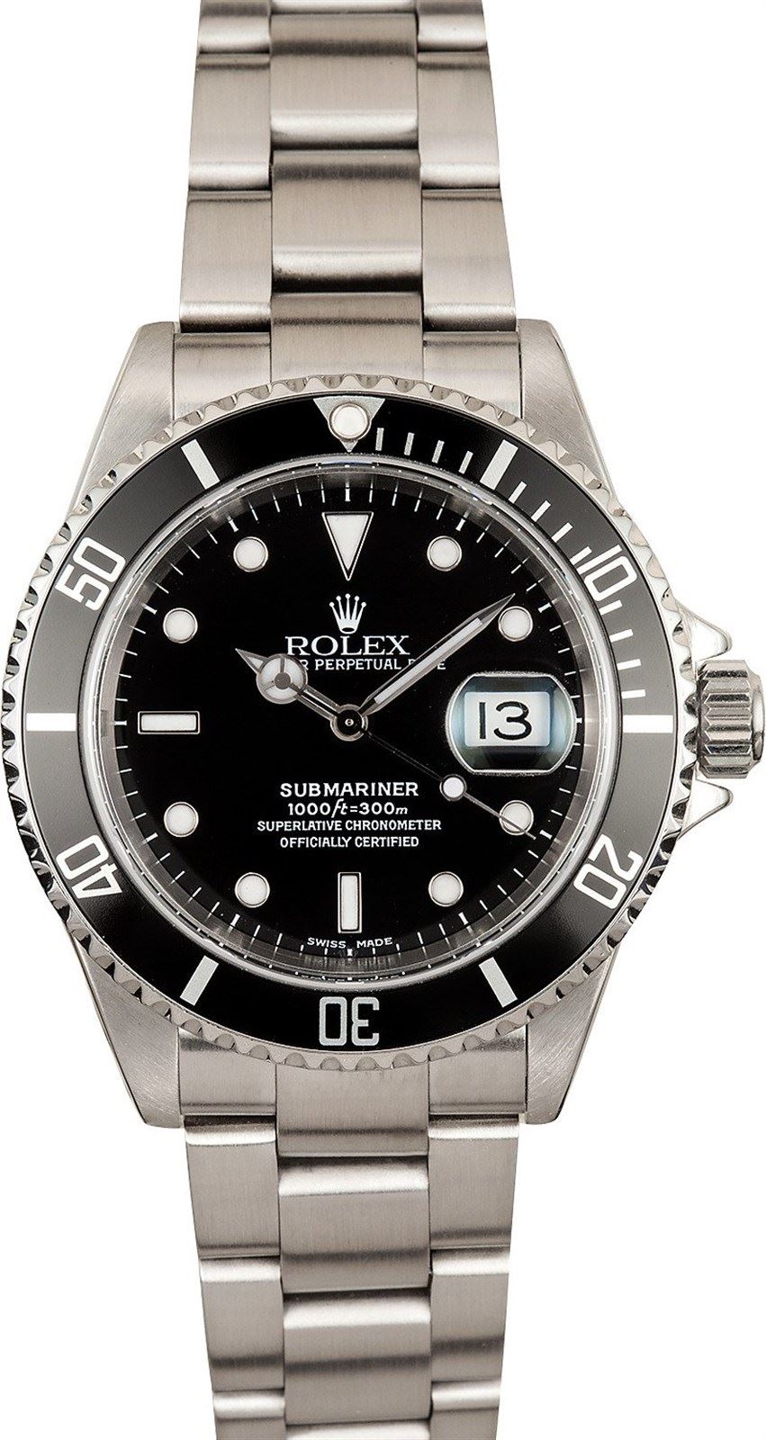 Model/Style-Submariner 16610 Features-Automatic movement w/date, waterproof screw-down crown, unidirectional rotatable time-lapse diver's bezel, scratch-resistant sapphire crystal Case-Stainless steel (40mm) Bracelet-Stainless steel Oyster #9230