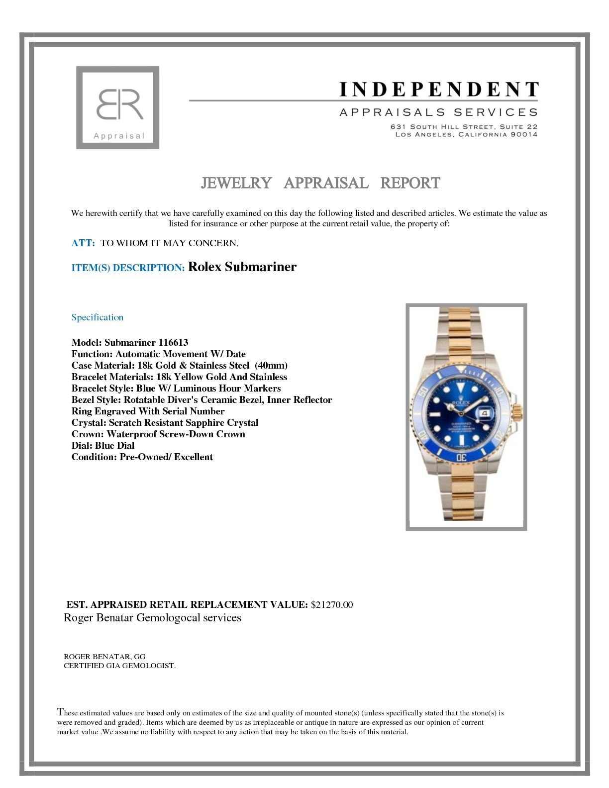 Not all jewelry, watches or loose stones are appraised and the appraisals are provided for bidders only in certain instances at the discretion of the Company. Appraisals, if any should be use to verify gemstone and or metal weights. The appraisals should not be used for valuation of any item. No guarantee, warranty or representation is intended by the Company in any appraisal. All dimensions and weights of such lots are approximate and are consistent with standards and practices in the industry. Condition reports are provided as a service to the prospective buyer. Bidders should take note that such descriptions are not warranties and that watches may need general service, change of battery or further repairs for which the buyer is solely responsible