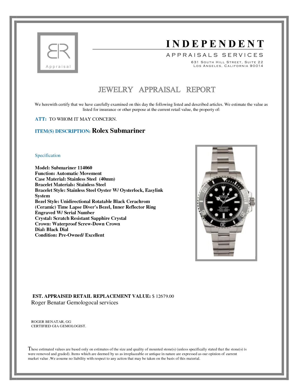 Not all jewelry, watches or loose stones are appraised and the appraisals are provided for bidders only in certain instances at the discretion of the Company. Appraisals, if any should be use to verify gemstone and or metal weights. The appraisals should not be used for valuation of any item. No guarantee, warranty or representation is intended by the Company in any appraisal. All dimensions and weights of such lots are approximate and are consistent with standards and practices in the industry. Condition reports are provided as a service to the prospective buyer. Bidders should take note that such descriptions are not warranties and that watches may need general service, change of battery or further repairs for which the buyer is solely responsible
